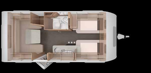 Rullbädd mellan enkelsängar (460 EU, 500 EU, 540 UE) Bakljusramp och gasolkoffert i CAMPOVOLO GREY