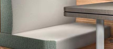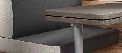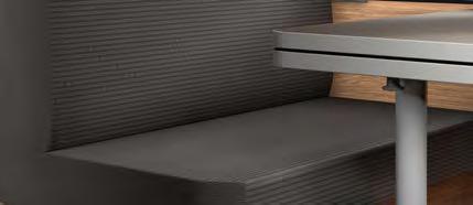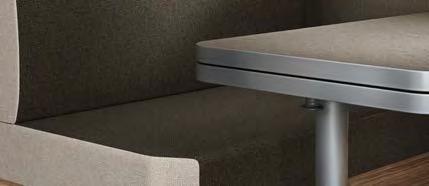 Den innovativa dinetten med fristående bord och sittbänk på tvären skapar en förbättrad ergonomi.