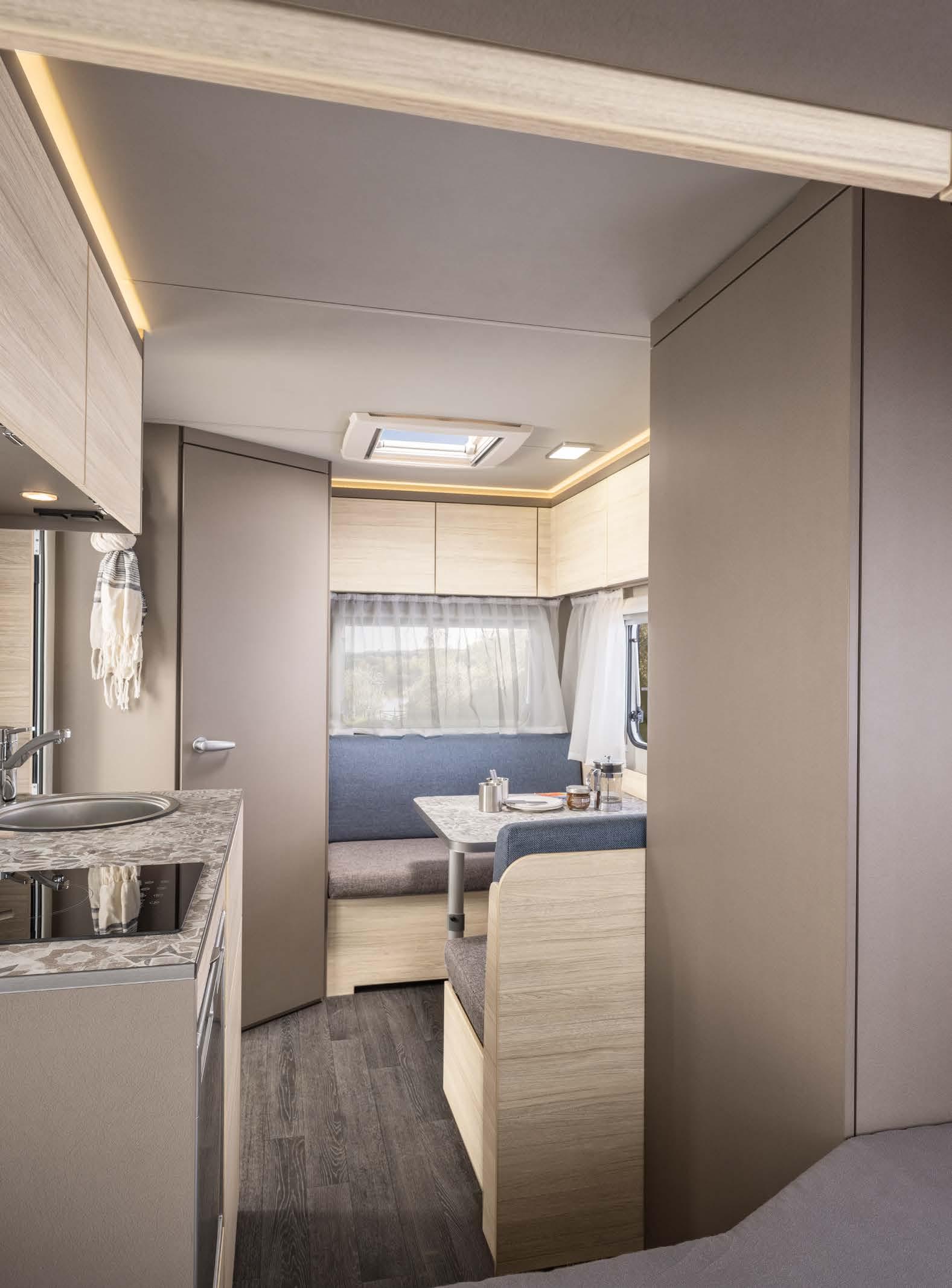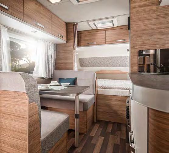 Bekvämt för både umgänge och sömn. Dinetten är hjärtat i varje husvagn. Här träffas familjen, här äts det frukost och smids planer för dagen. Och det bästa? De bekväma sittplatserna kan enkelt omvandlas till sovplatser.