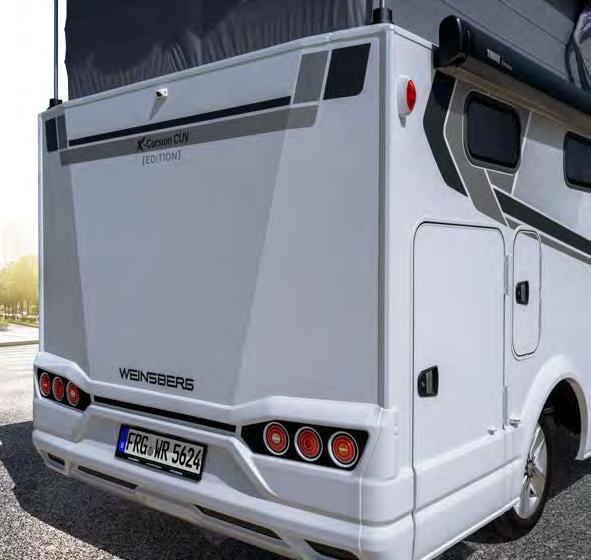 Uppgifter om leveransomfattning, mått och vikter samt produkternas utseende motsvarar den information som fanns tillgänglig när katalogen trycktes (07/2024). Vi reserverar oss för ändringar av utrustning, tekniska data, serieomfattning och priser. Informera dig i det avseendet hos din auktoriserade WEINSBERG återförsäljare innan köpet. Därutöver reserverar vi oss för mindre färgavvikelser och avvikelser i produktegenskaper om dessa inte går att undvika med anledning av material (t.ex färgavvikelser med ca 2,0 dE mellan lack på plåt och lack på GFK/plast), så länge som de kan anses vara rimliga för kunden. Färgavvikelser kan förekomma av trycktekniska skäl. Se därför till att få omfattande rådgivning om seriens aktuella tillstånd av en officiell återförsäljare för WEINSBERG innan du köper ett fordon. En del av bilderna visar specialutrustning som kan levereras mot en tilläggsavgift, eller funktioner av prototyper/ studier som inte motsvarar standard och som i vissa fall inte kommer att finnas tillgängliga som specialutrustning. Dekorationerna på bilderna i katalogen ingår inte i leveransen. Tekniska data och juridisk information, i synnerhet även på temat fordonsvikter hittar du i den aktuella prislistan för WEINSBERG. Denna finns på internetsajten för www.tabbert.com och i vår online-konfigurator på configurator.tabbert.com. Observera att antalet angivna sovplatser kan inkludera sovplatser för både vuxna och barn. Sovplatserna har inte samma dimensioner. Vi rekommenderar därför att du pratar med din WEINSBERG återförsäljare angående måtten på de sovplatser som finns i fordonet så att du kan bestämma om de är lämpliga för den beläggning (vuxna/barn) du tänker ha. För vissa modeller måste ytterligare utrustning väljas till för att uppnå det maximala antalet möjliga sovplatser. Din WEINSBERG återförsäljare hjälper gärna till. Kopiering, vare sig helt eller delvis, är tillåtet endast med föregående skriftligt tillstånd från Knaus Tabbert AG. Med reservation för tryckfel och misstag. Koncept och design: Sery* Brand Communications GmbH