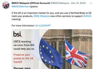 Especially noteworthy for 2020 was the BMCC Webinar Series on the Impact of COVID-19, a series of 11 webinars especially developed to address various issues faced by the business community arising from the pandemic. The BMCC also successfully delivered its frst-ever digital conference, the BMCC - Standard Chartered Bank: Virtual Green Conference 2020, aimed at addressing key concerns regarding the state and future of the green economy. The event, organised in collaboration with Standard Chartered Bank Malaysia and supported by the British High Commission Kuala Lumpur, attracted close to 300 participants from diverse sectors.