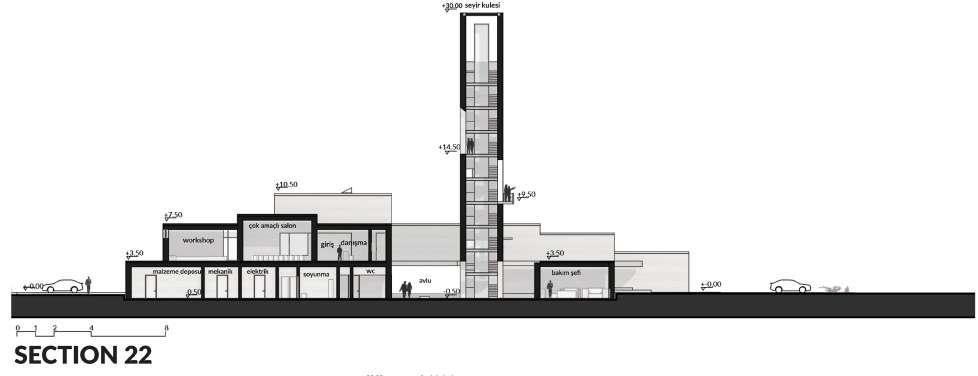 The experience of observation and feeling the handicapped climate conditions of the geography, which are the last and fundamental of the experience of the visitor, starts on the courtyard and continues on the observation tower which is 30m above from the ground.