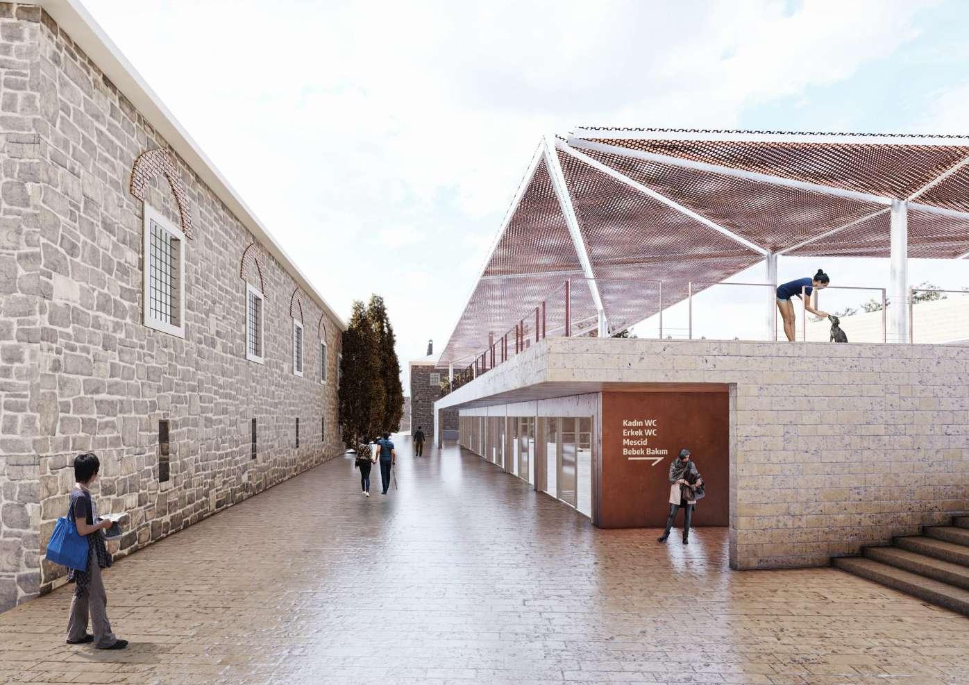 Open spaces and squares at different levels, created with reference to the slope of Çarşıbaşı and Hanlar District, allow the spatial diversity of the existing texture to continue in continuity.