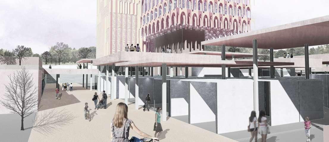 Inspired by the traditional architecture of the Souk this scheme aims to reinvent the market place, giving the city a new civic heart.