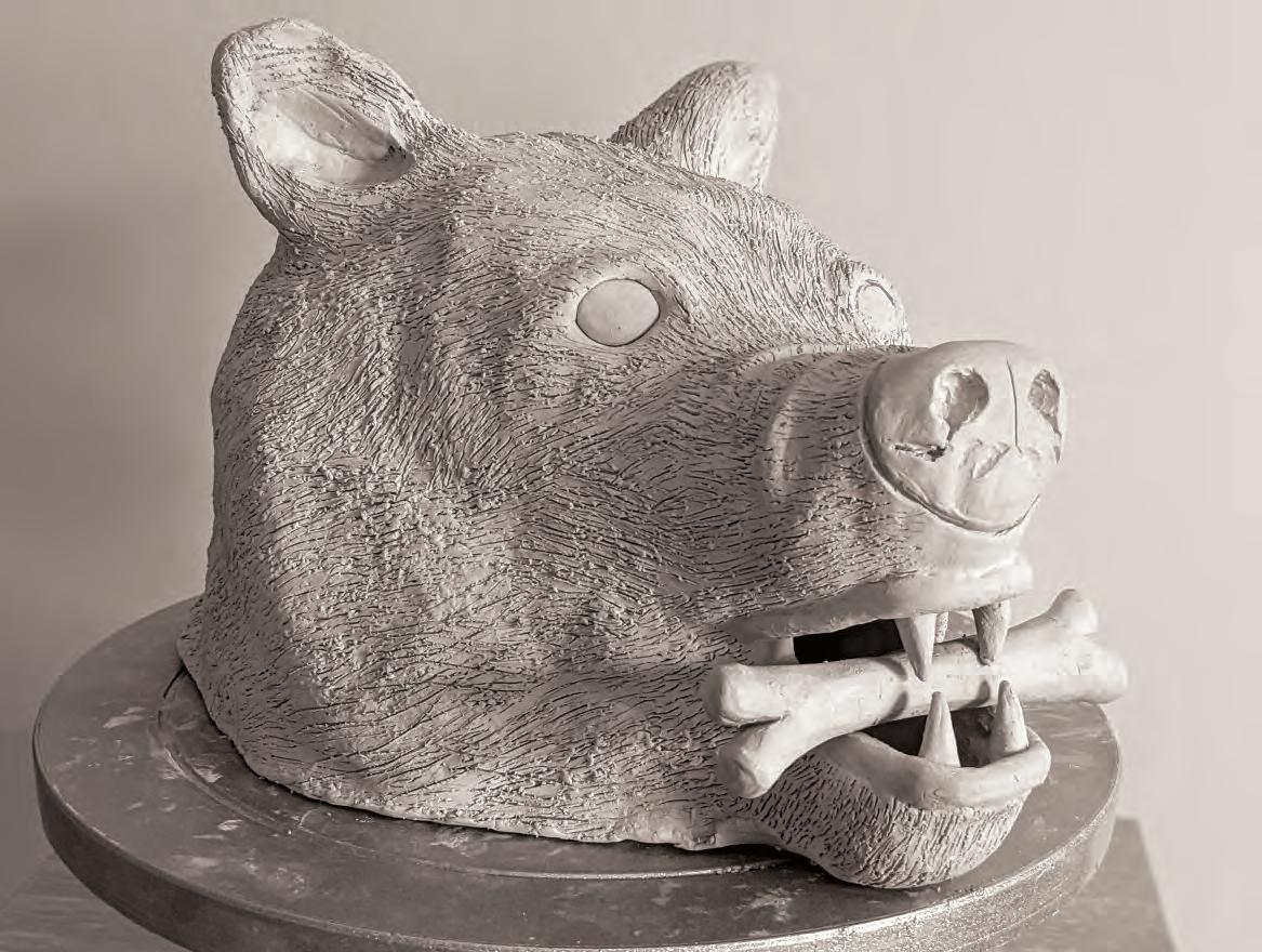 Jake’s glass black eyes remain unblinking, but reflect the wavering light of streetlamps as we continue to walk.
