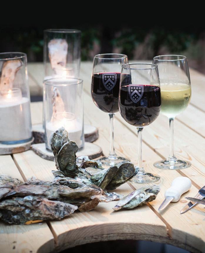 welcome glass of wine with hors d’oeuvres and live music by Purple Martin Strings Trio, and Chef James’ special Southern Fall menu follows, as the oyster roast gets underway.