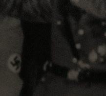 Members of the SS Helferinnen (female auxiliaries) sit on a fence rail as Karl Höcker passes out bowls of blueberries. The original caption reads “Hier gibt es Blaubeeren” (here there are blueberries).
