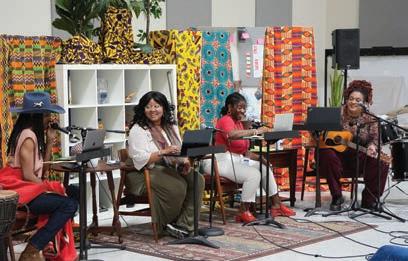 (Top left): Artists Eric Emauni, a.k. payne, Ashley M. Thomas, and Nora Schell share in The Ground Floor’s 2025 Summer Residency Lab