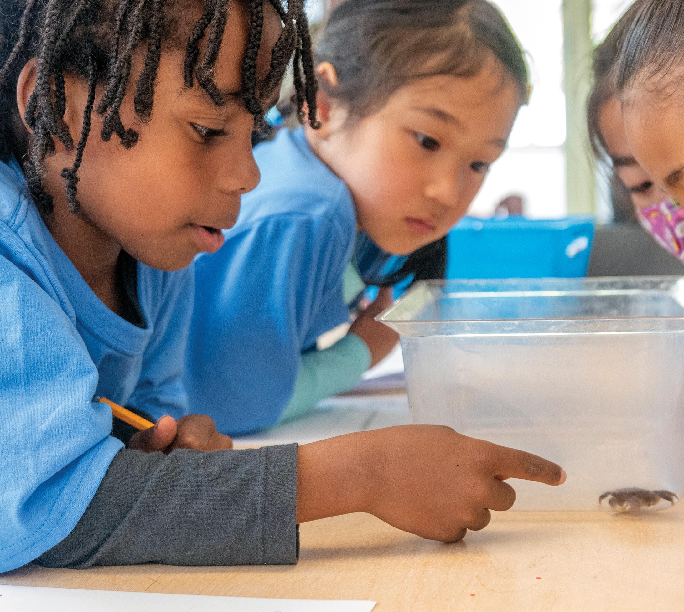 Kindergartners studying sand crabs in the Academic Talent Development Program’s seashore science class