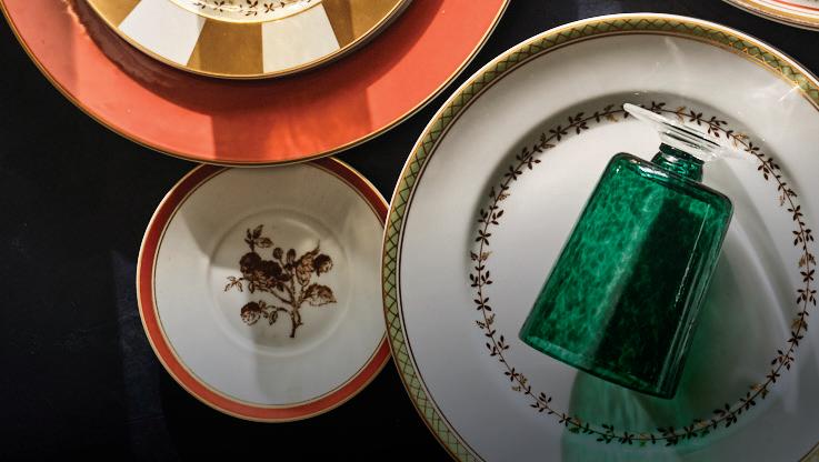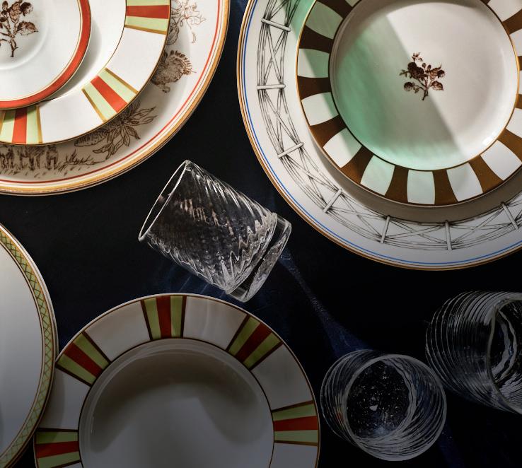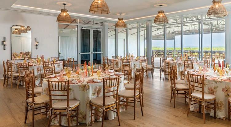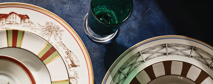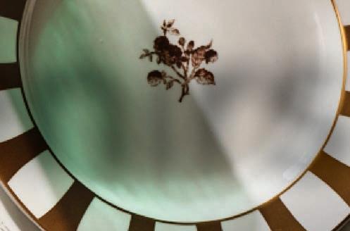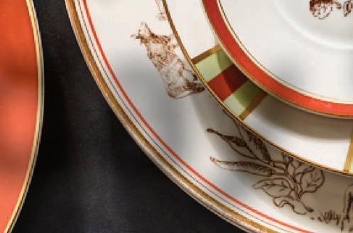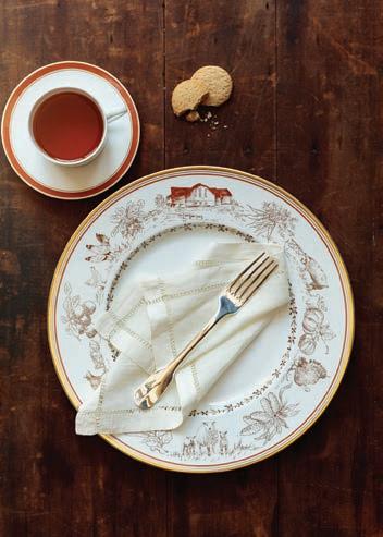 Diners are bound to enjoy what’s on their plates as much as the plates, themselves. The chinaware displays the artwork of Master Gardener John Coykendall, who sketched bespoke designs emblematic of the property for chargers, dinner plates, and teacups.