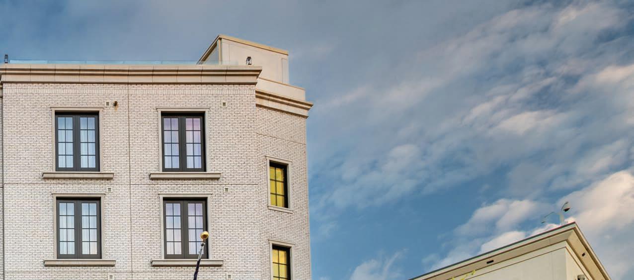 Formerly housing the T.B. Rayl Co. department store and Singer Sewing Machine Company, the building’s storied past meets modern details across hotel rooms, featuring hardwood flooring, midcentury furniture, and loft-style windows.