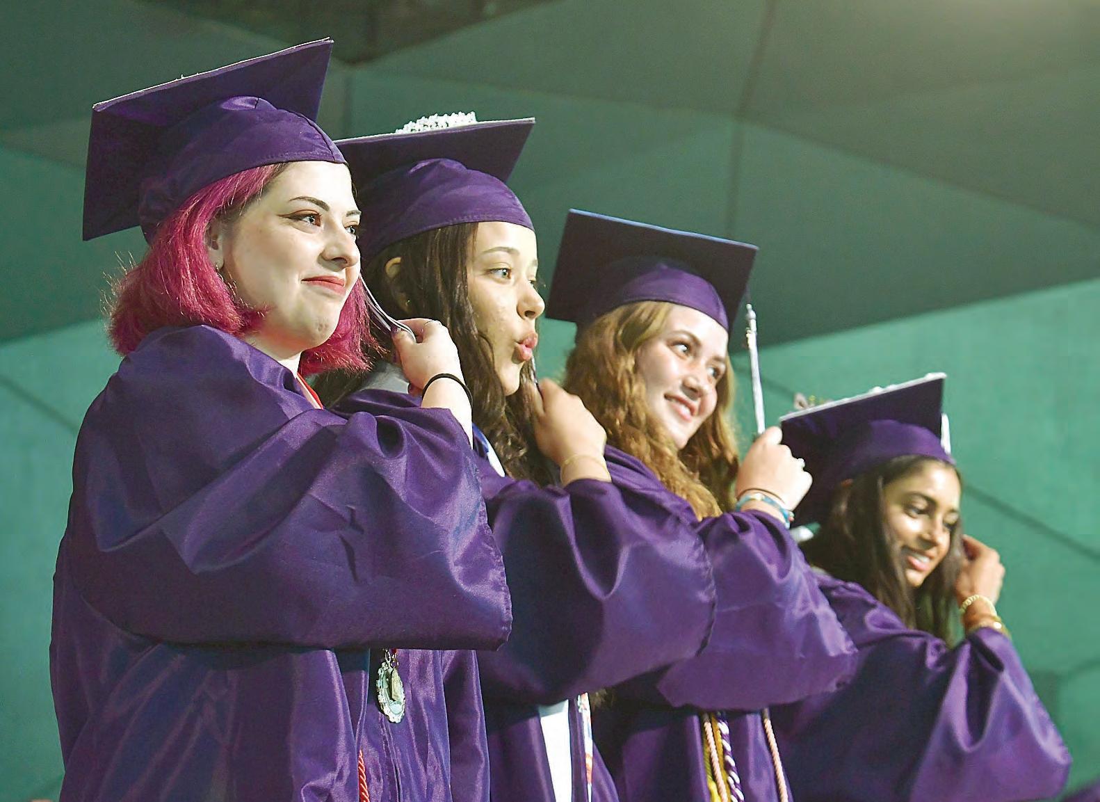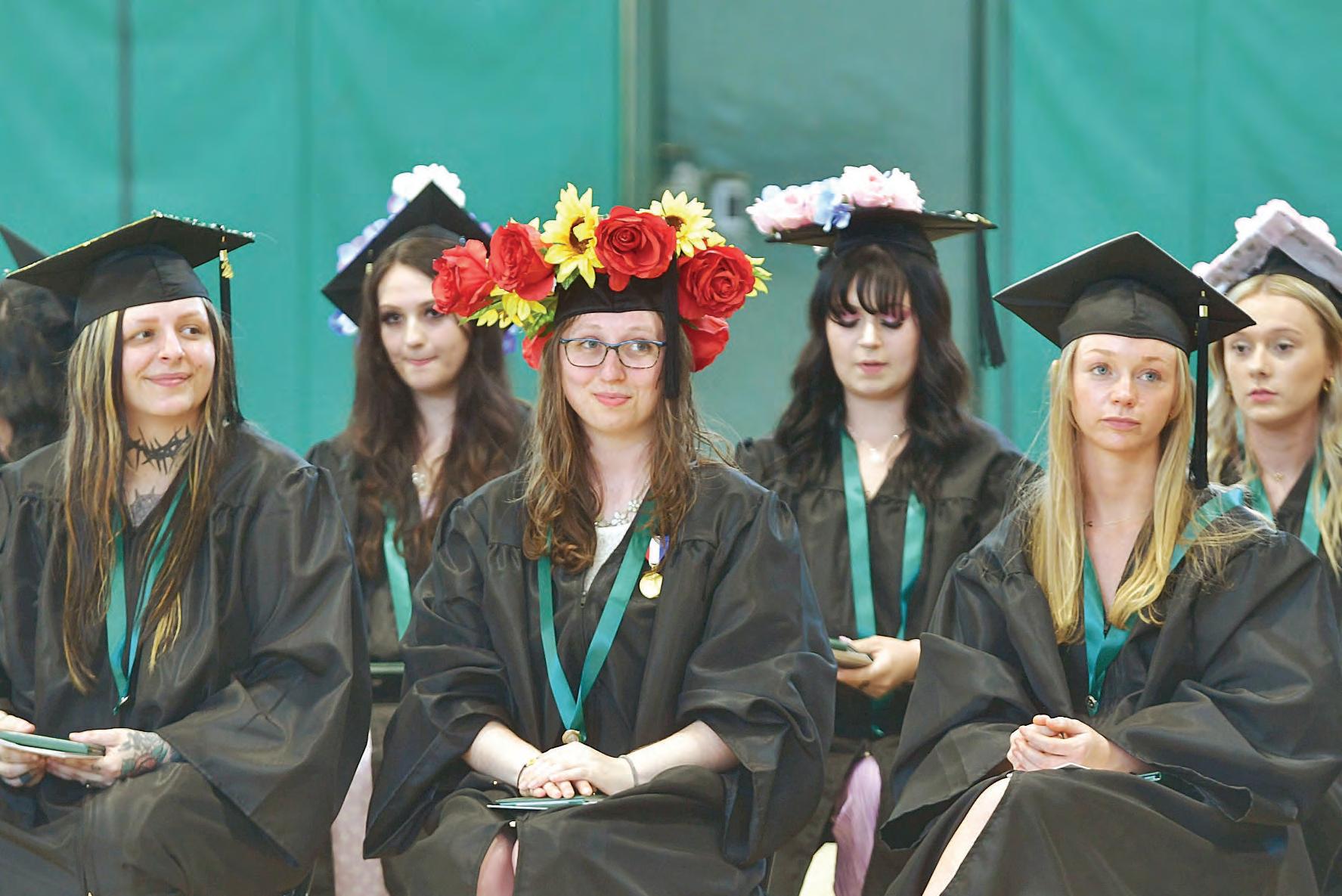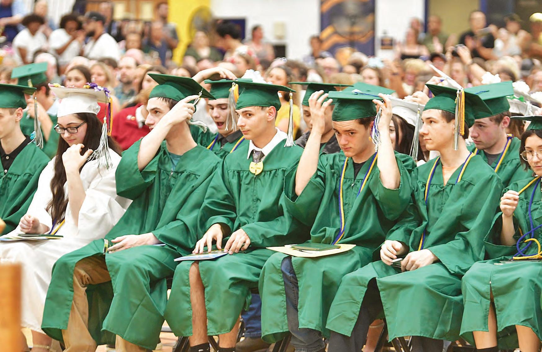 Graduates sit in their seats during graduation ceremonies for the postsecondary programs at McCann Technical School on June 3 in the school’s gymnasium.
