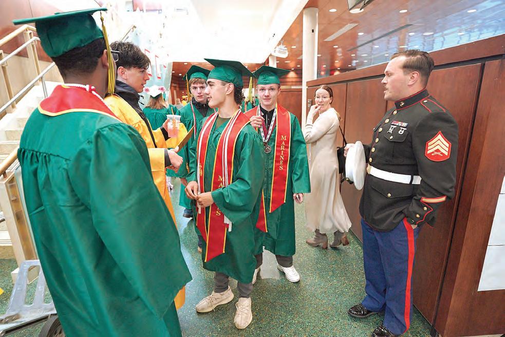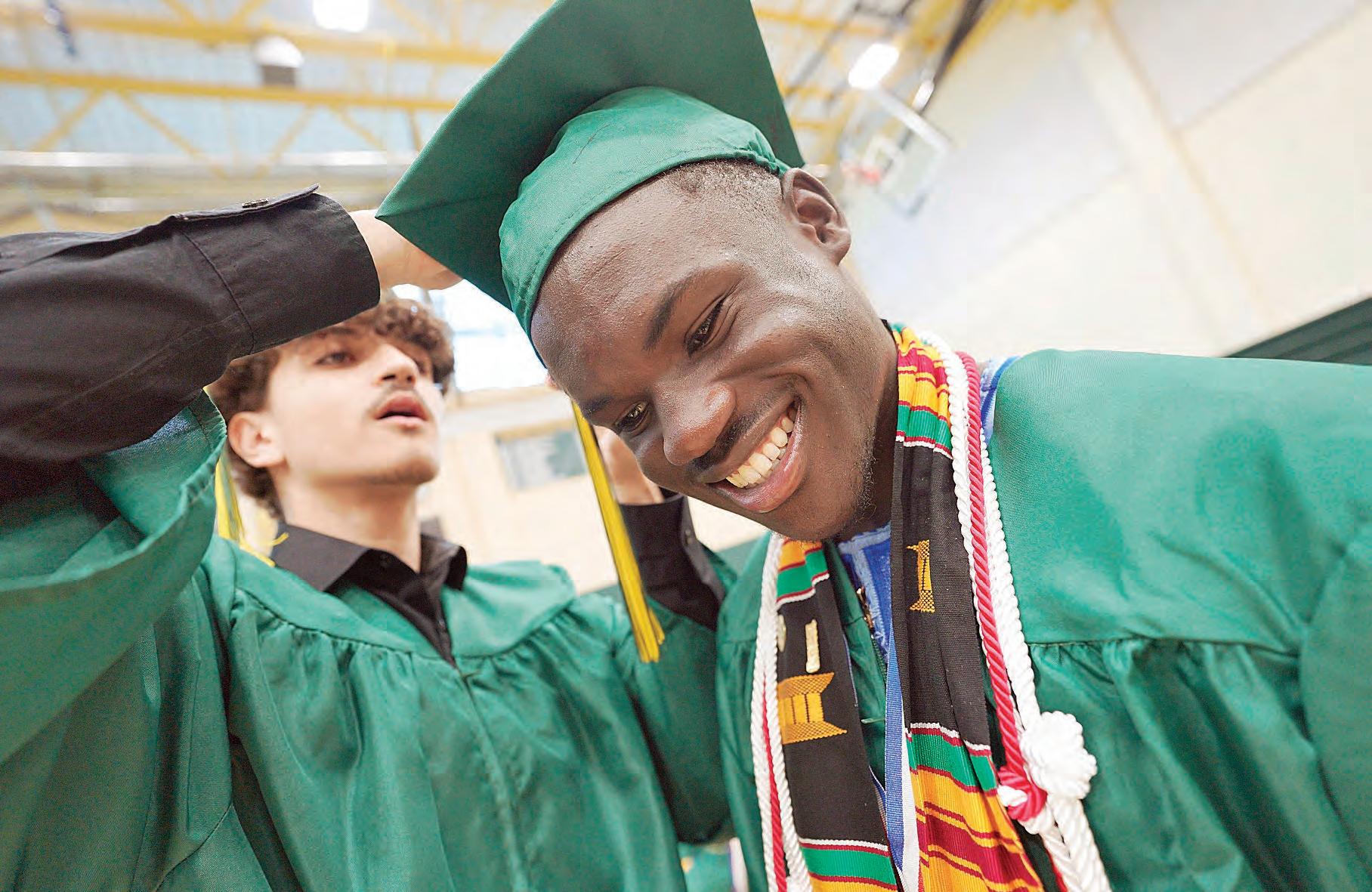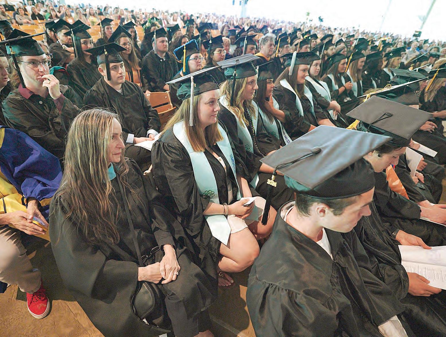 Graduates sit in their seats during graduation ceremonies for the postsecondary programs at McCann Technical School on June 3 in the school’s gymnasium.