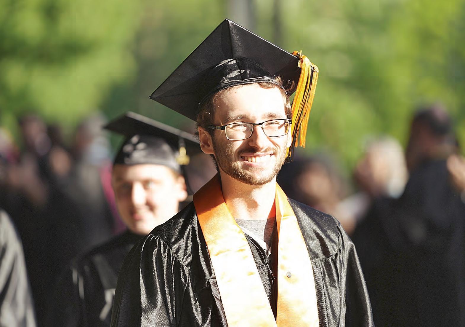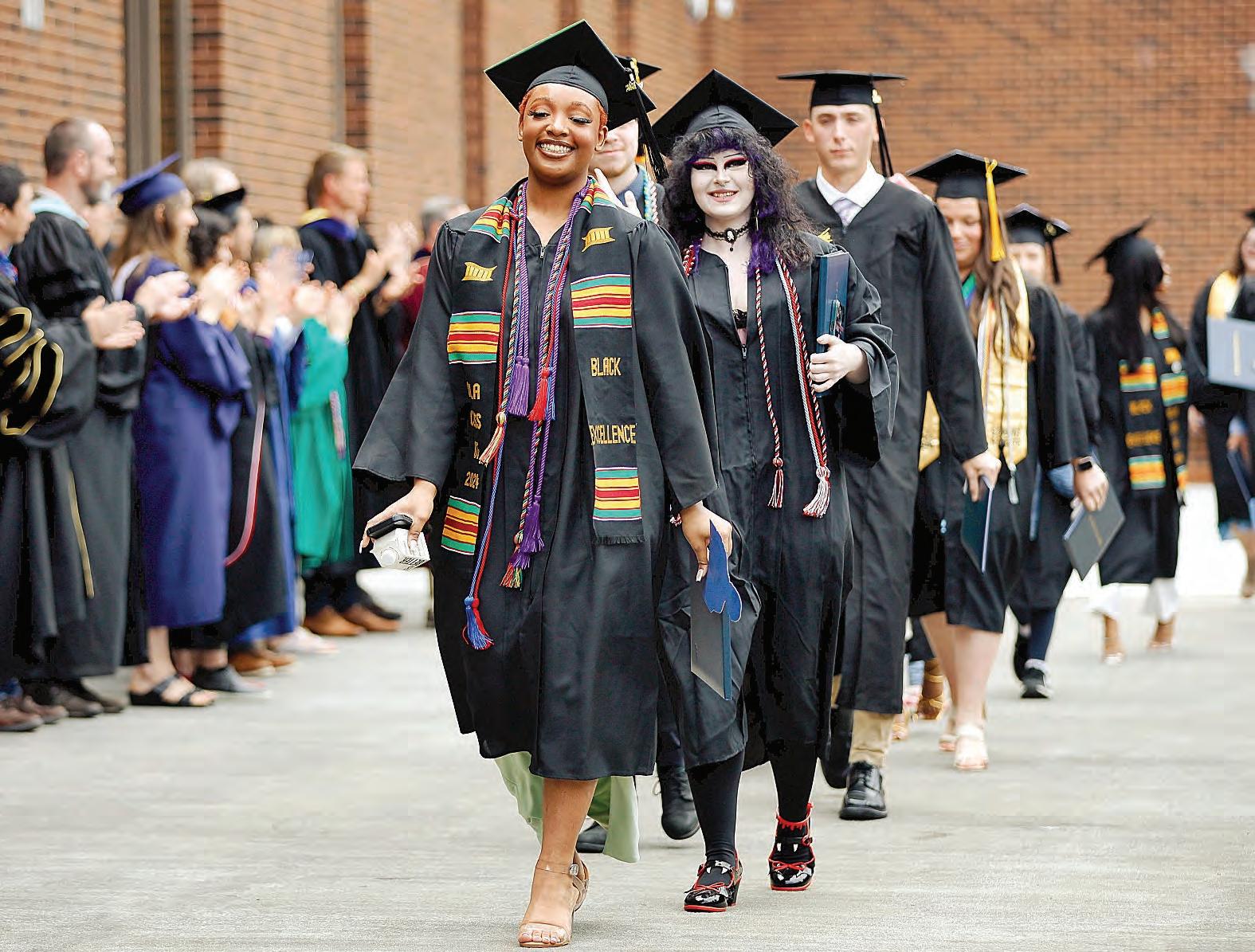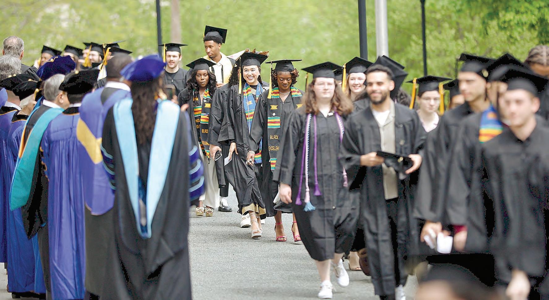 PHOTOS BY STEPHANIE ZOLLSHAN — THE BERKSHIRE EAGLE Graduates leave the Amsler Campus Center at the close of the graduation ceremony on May 11.