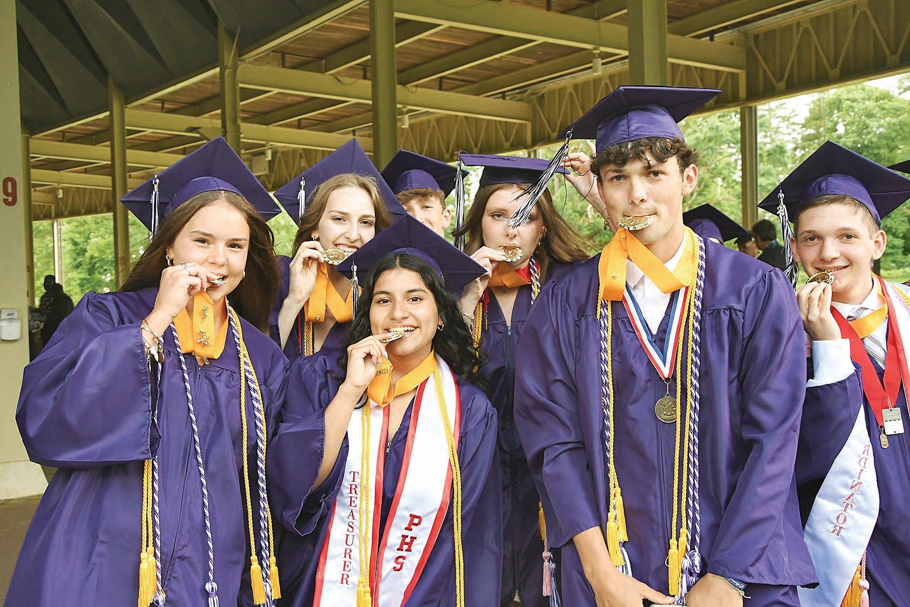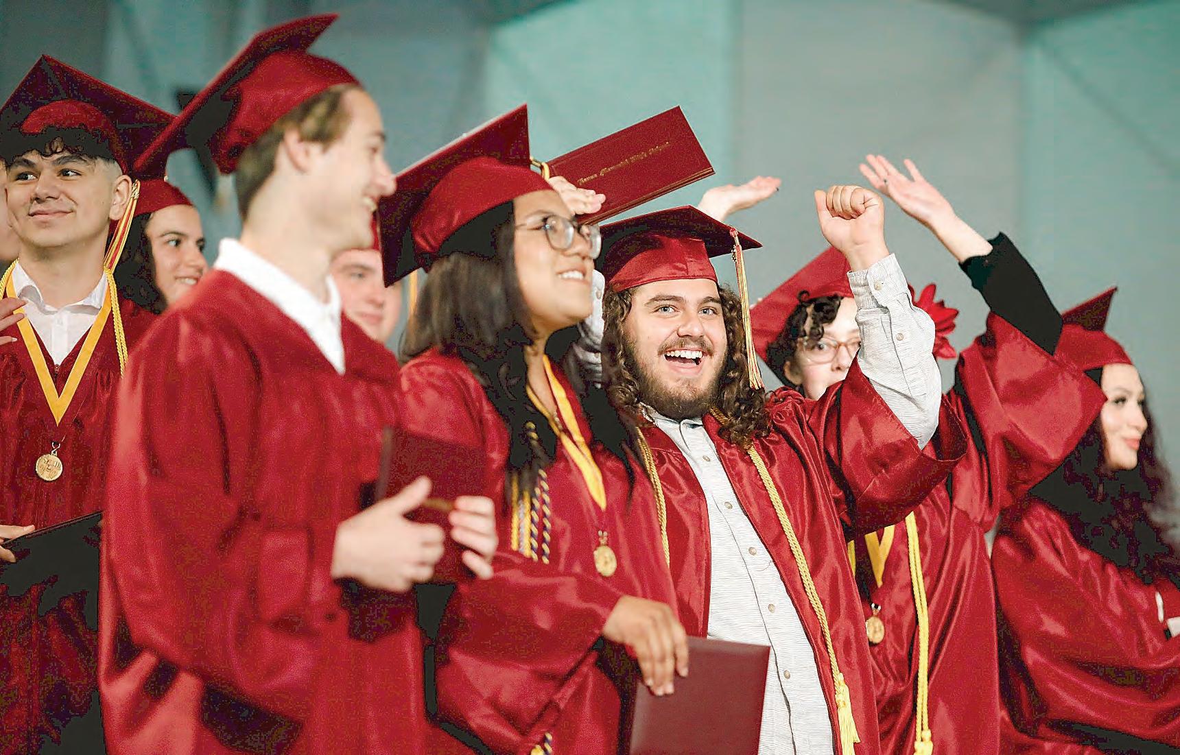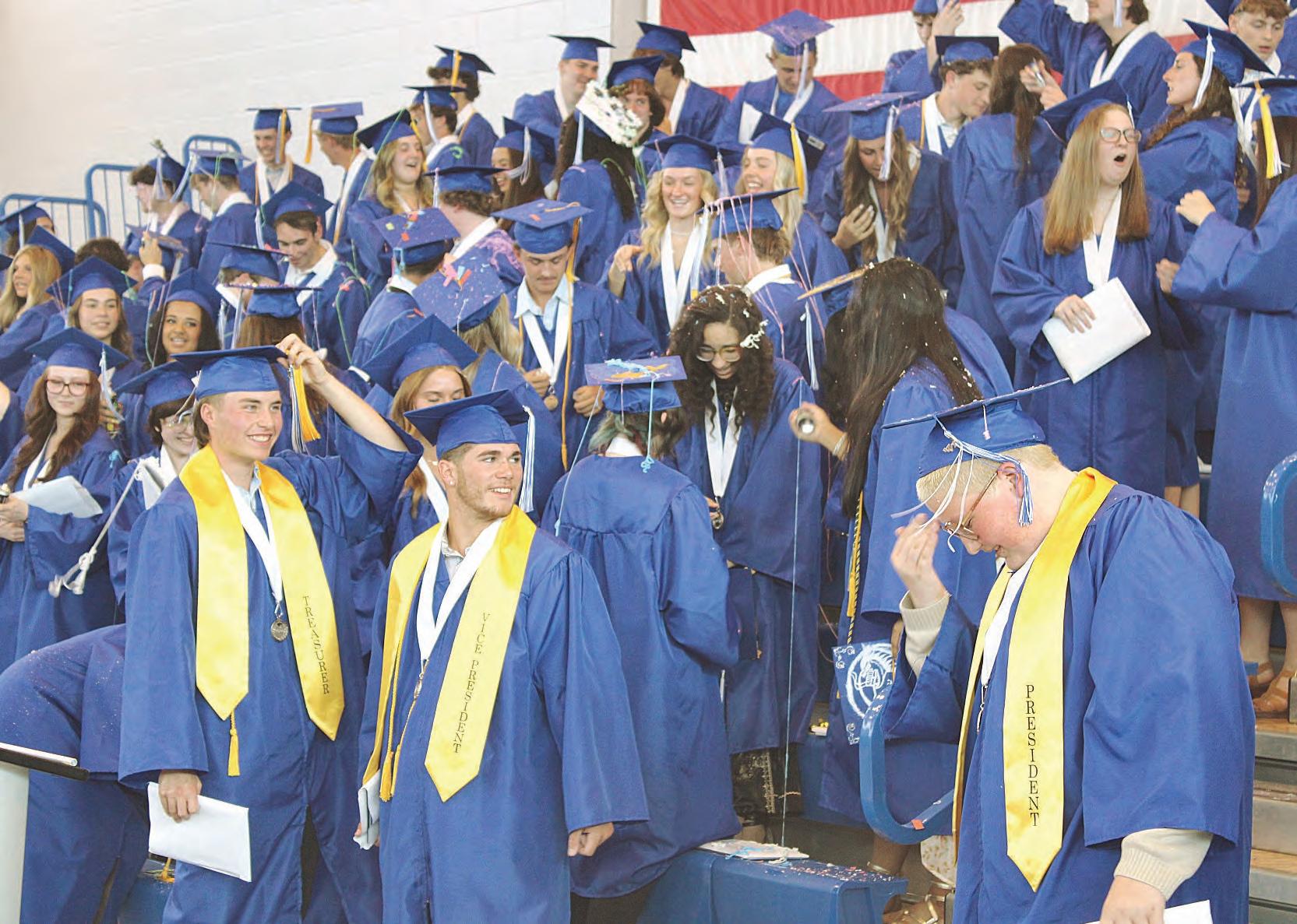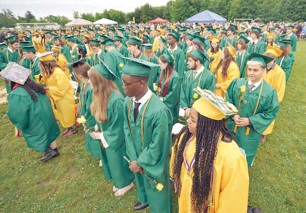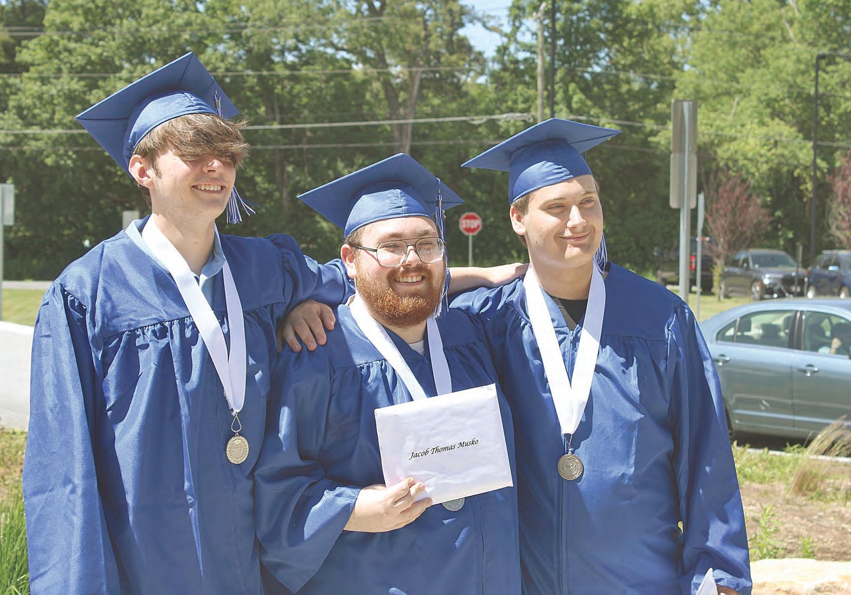 Students pose with their diplomas outside of Wahconah Regional High School following the graduation ceremony.