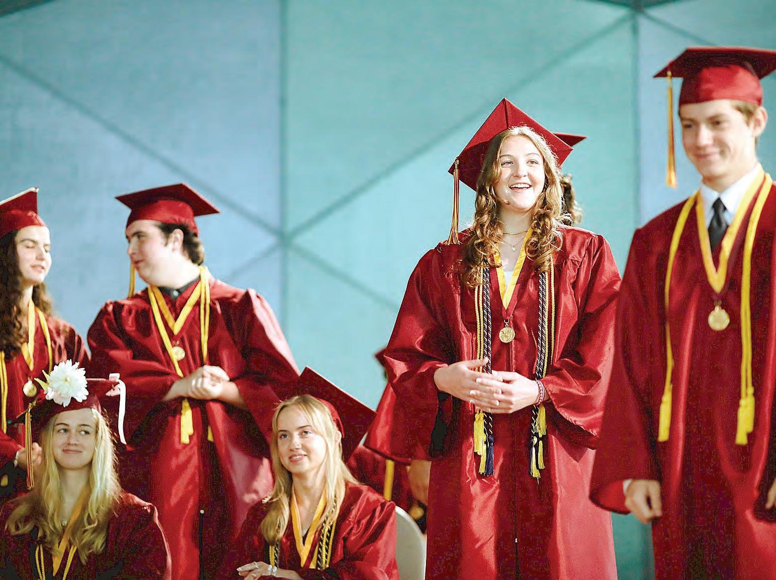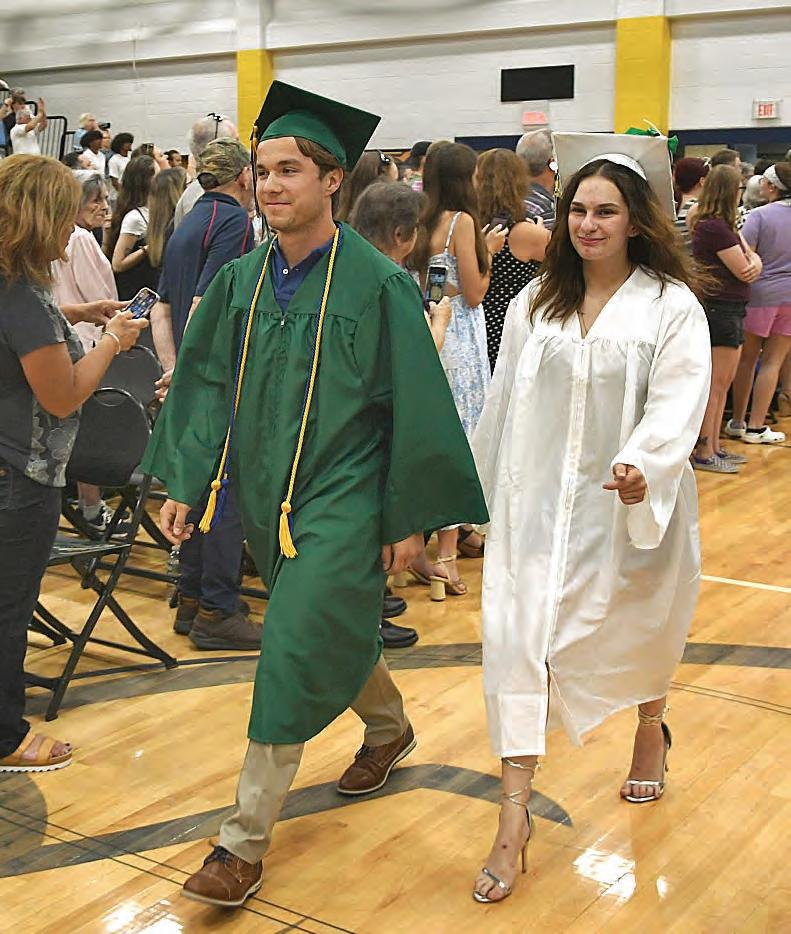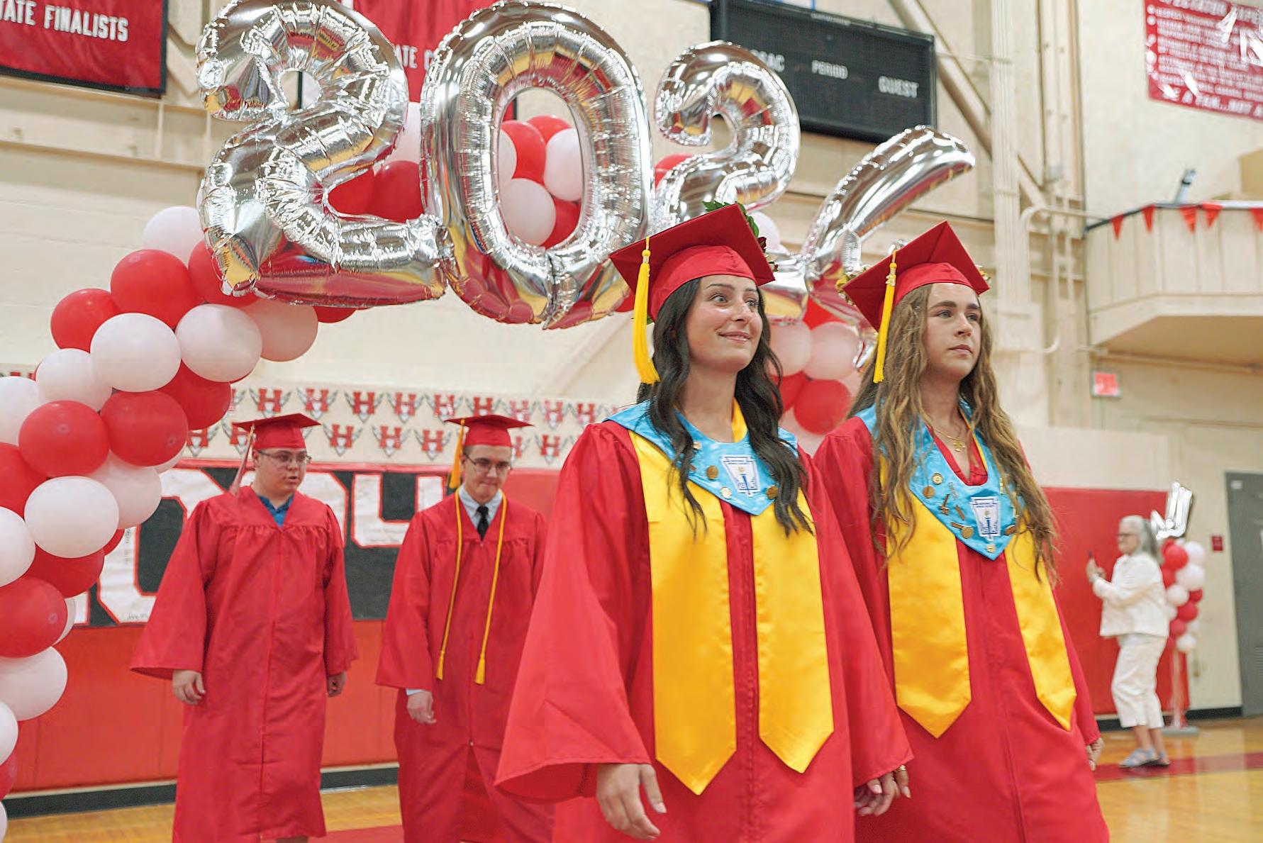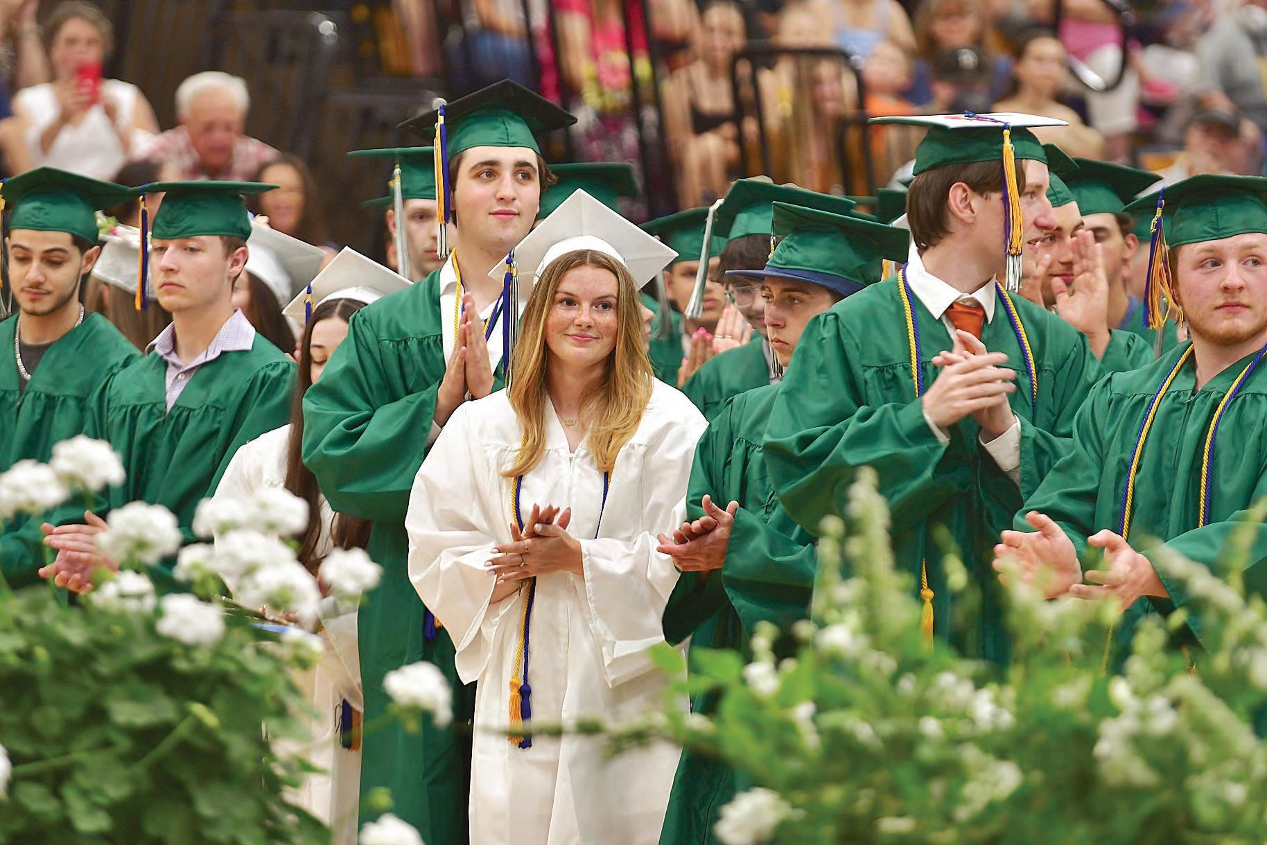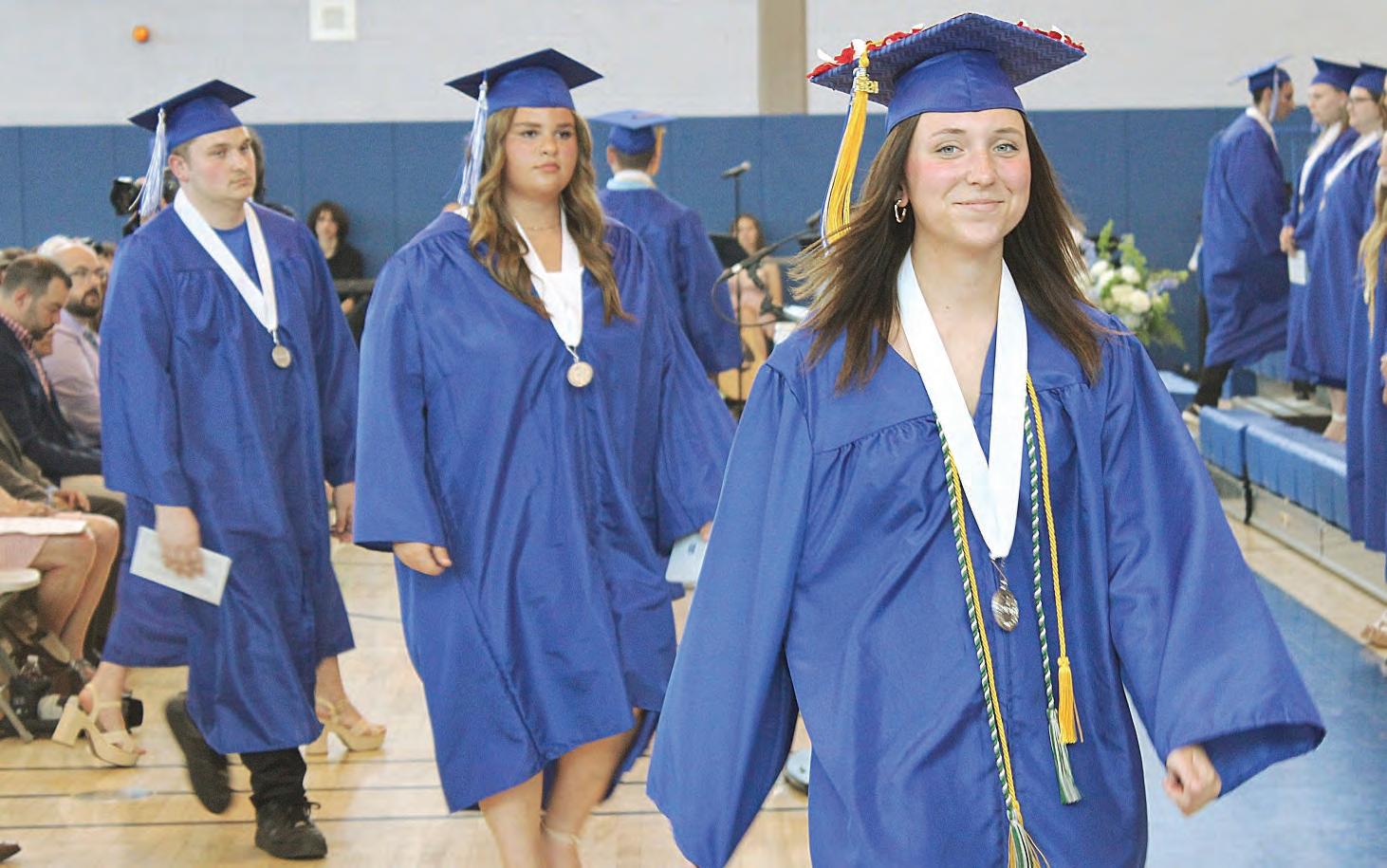 seniors march into their graduation ceremony on June 7 in the school’s gym.
