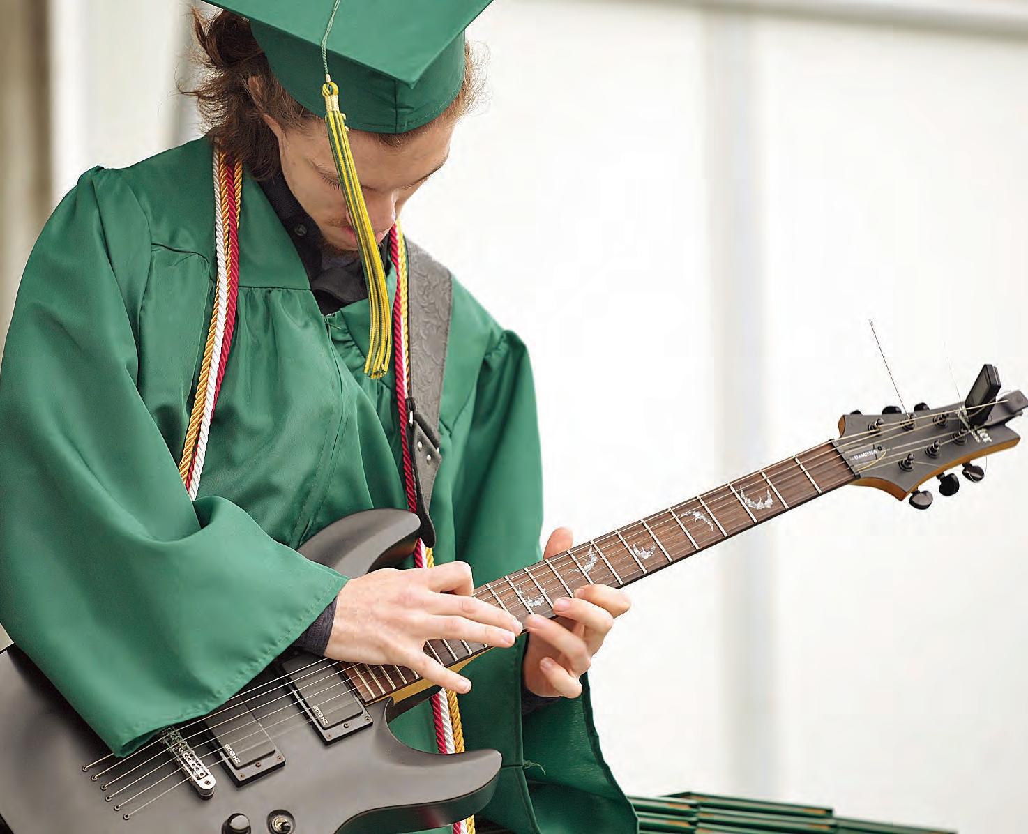 Taconic senior Zachary Farina cranks out a cool solo for his classmates during June 9’s graduation ceremony.