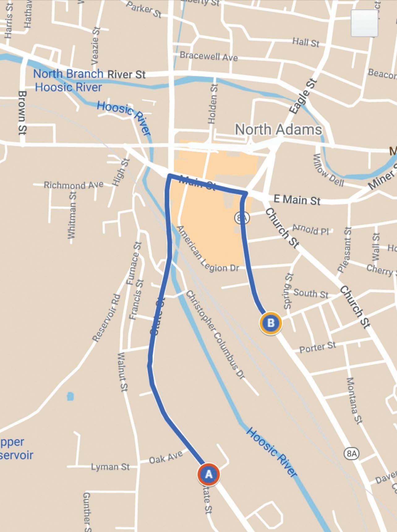 Street cones, wooden horses, and signs will have been placed at all intersections with the help of the North Adams Department of Public Works. Portions of the route will be shut down at 11:00 AM, including all northbound traffic into the city via Route 8. By 12:00 PM, all traffic detour posts will be in place.