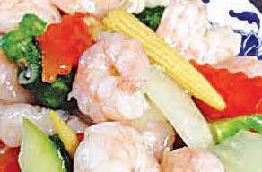 Shrimps, scallops, lobster and crab meat sauteed with broccoli and snow peas in a traditional Shanghai sauce.