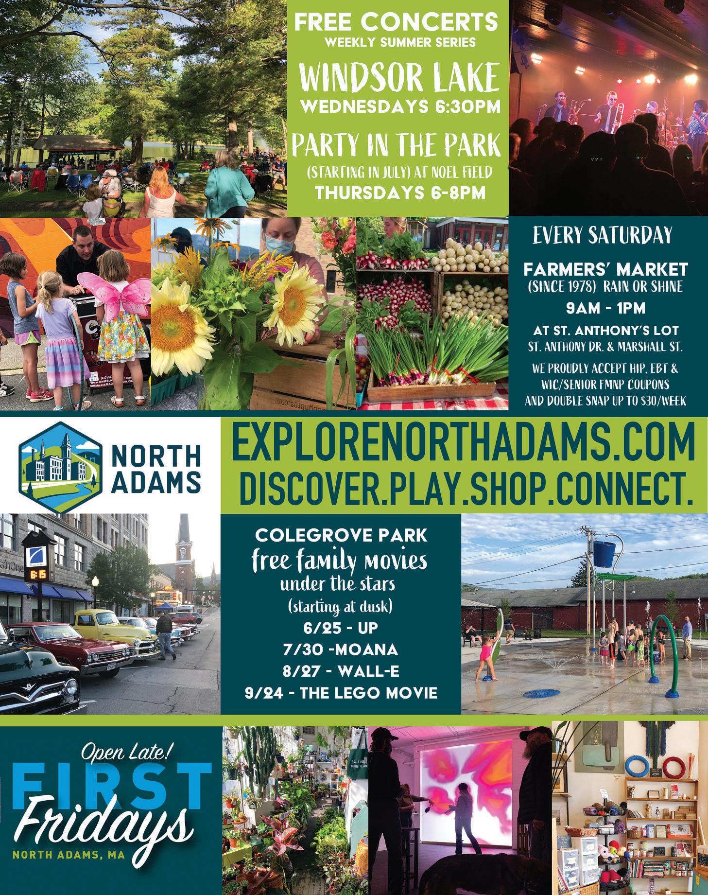 All programming is free. Saturday, June 19: Summer Kickoff! Book Sale, Storytimes at 11 a.m., 12:30 p.m., 2 p.m., plus activities for the Summer Solstice and Juneteenth. 10 a.m.-4 p.m. Wednesdays, June 23-Aug. 25: Outdoor Storytime, followed by crafts with the Becket Arts Center, 11 a.m. to noon.