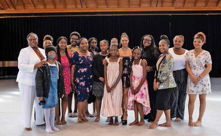 Misty Copeland with members of the Rites of Passage and Empowerment (ROPE) program: Back row to the left and right of Misty Copeland: Shirley Edgerton, Cashmere Young, Zoe-Ruth Brizan, Valerie Bonney, Sanaya Frazier, Justinnajah Clark, Akilah Edgerton, Cashey Young, and Lynece Moses. Front row: Alaisia DiSola-Staples, Louise Brizan, Kennedy Dews, Iyrielle Spratling-Keele, Elise Henderson, and Roberta McCulloch-Dews