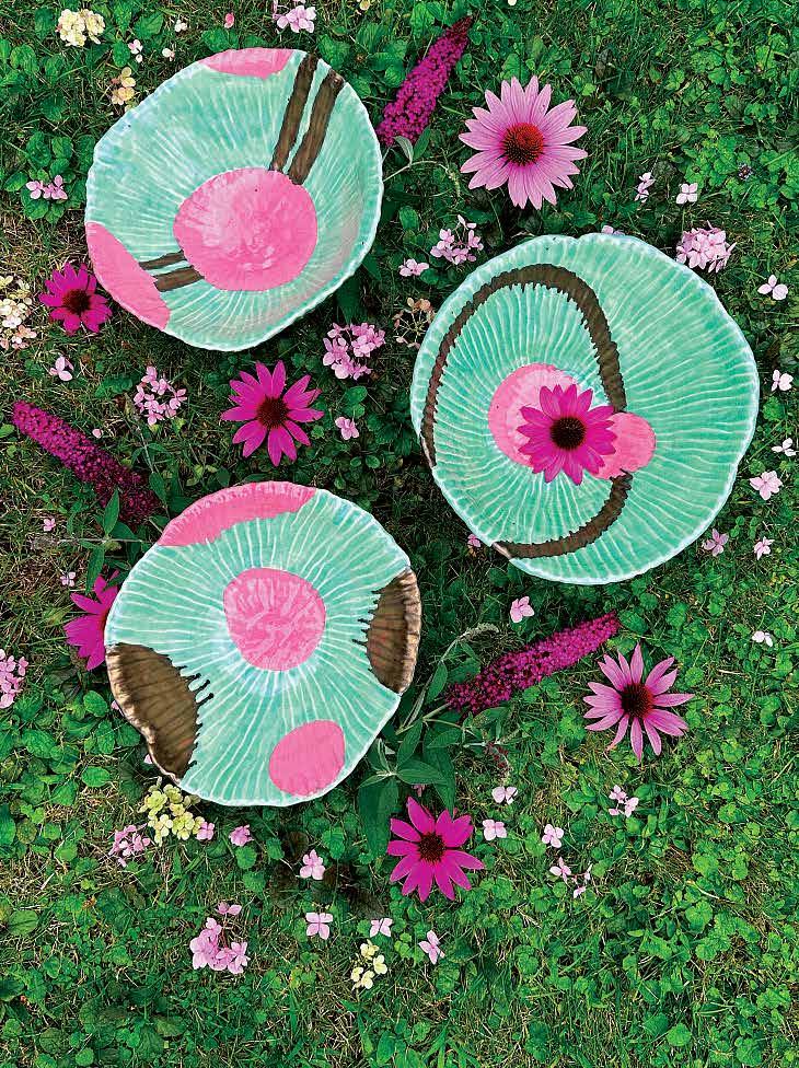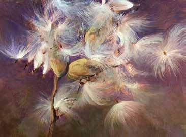 Ann Getsinger’s “Splosion” (top) and “Rooted” (left); her show, “The Garden of Curiosity,” opens at Berkshire Botanical Garden September 1.