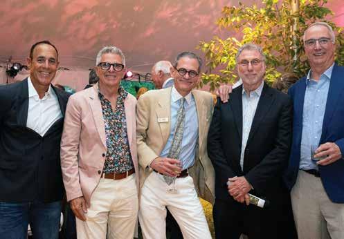 Left: “A Midsummer Night’s Dream” inspired gala dinner; Below: John Feeley, Danielle Fried, Jason Rak, Alyssa Fried, Nick Kowgios, Paula Kowgios, Shakespeare & Company Trustee Karen Kowgios, Robert Fried (2023 Tony Honors for Excellence in the Theatre award winner), Debbie Turowsky, and Norman Turowsky