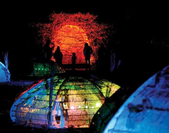For a mix of rustic history and electrified holiday wonder, stop by Hancock Shaker Village’s afterdark display to take a stroll through the lanternlit village, visit the resident animals, try some Shaker crafts, and enjoy artistic light projections at the iconic Round Stone Barn.