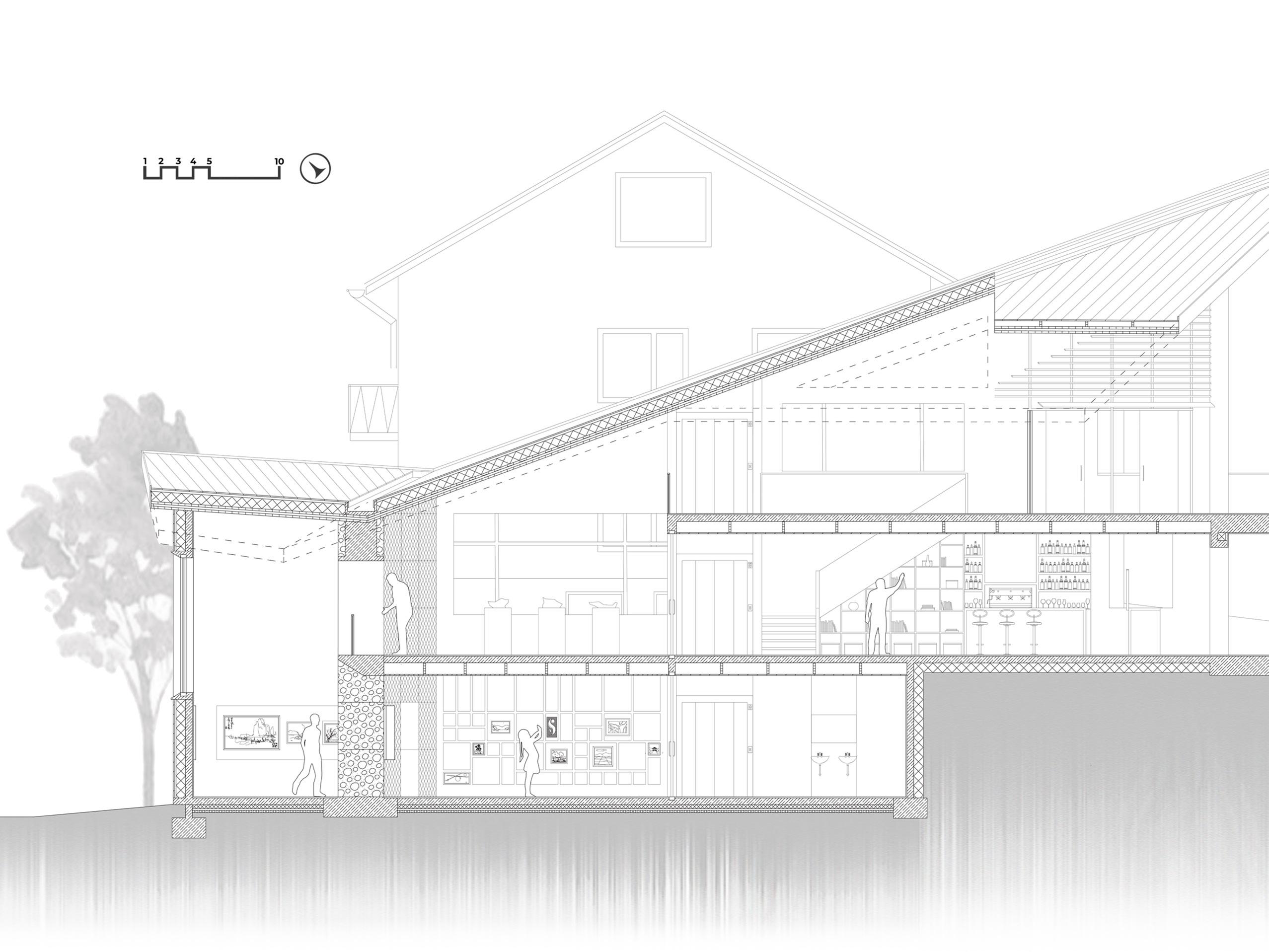 Rooted in the town’s cultural fabric, the gallery showcases the works of a local artist alongside rotating exhibitions, serving as a catalyst for artistic exchange. Its butterfly roof folds toward the town hall, with its larger wing rising in dialogue with Marktplatz Street. Above the café, an observation deck frames a striking view of the extinct volcano and the church atop Vulkankegel, grounding the space in its dramatic landscape.