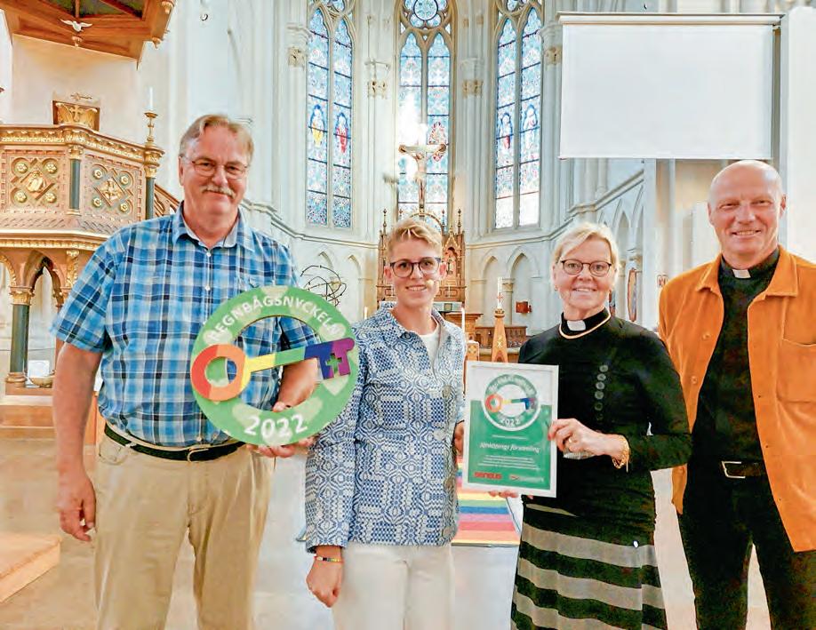 » Vid veckomässan i Sofiakyrka under Qom Ut-veckan i slutet av augusti, tog Jönköpings försam ling emot Regnbågsnyckeln som är en hbtq-märkning. Detta efter att förtroendevalda och medarbetare i församlingen genomgått utbild ning och studiecirklar med samtal och refletioner och sedan arbetat fram en mångfaldsvision för en mer inkluderande kyrka.