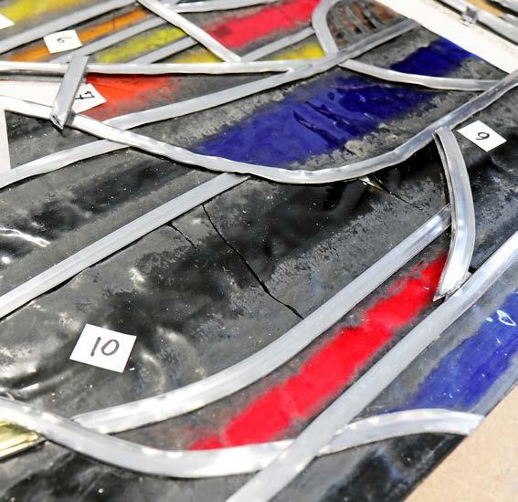 EN UTMANING NÄR man ska renovera glasmålningar och blyinfattade fönster är att det är svårt att hitta rätt kompetens. Det krävs också tillstånd från länsstyrelsen för varje del i processen