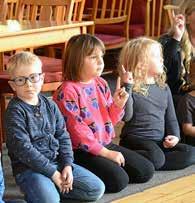 EFTER SÅNGEN OCH leken är det dags för andakt och barnen samlas kring ett levande ljus på golvet. Om det var ett härligt kaos innan så sänker sig nu ett lugn över lokalen och barnen får landa lite innan de ska springa hem eller hämtas av föräldrar.