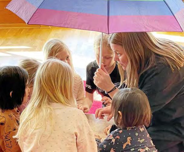 PÅ TORSDAGARNA BÖRJAR man med öppet hus kl 9. Då är små barn tillsammans med vuxna välkomna. Senare under förmiddagen står det babyrytmik på programmet. Hela stora salen fylls med liv –mammor, pappor och bebisar dansar, sjunger, klappar händer, leker, jagar såpbubblor och gömmer sig under den färgsprakande