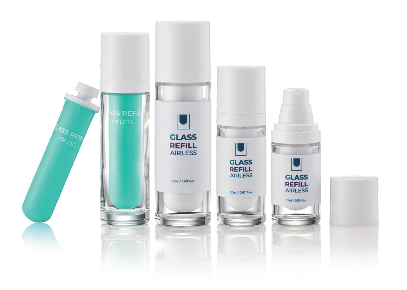 Shoulder: PP Inner Bottle: PP Outer Bottle: PETG/Glass Refill Cap: PP
