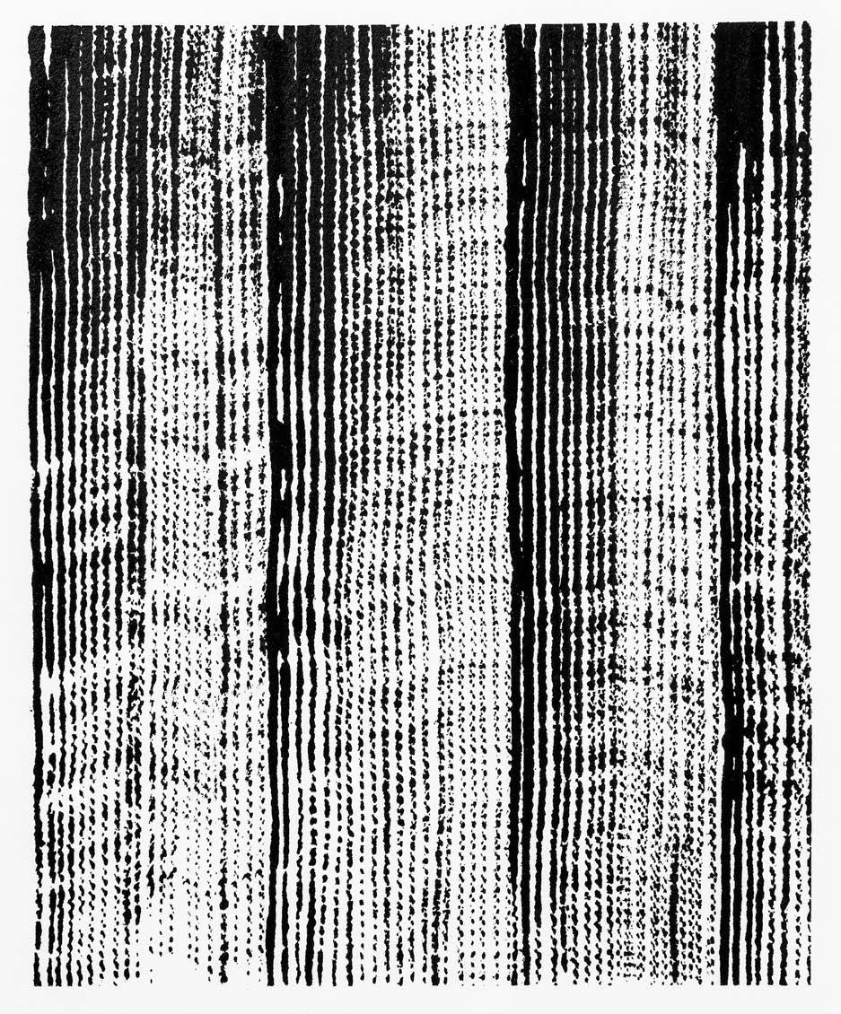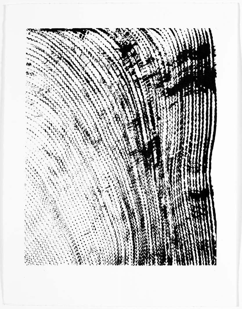 actual ink-soaked rope is draped in front of relaxed inked lines and creates repetition and illusions of shadows. The draping also suggests curtains, domesticity and has an eerie emotional intensity.