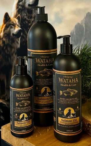 WATAHA Olej z łososia to jednoskładnikowy suplement dla psów i kotów. Czysty, niefiltrowany olej ze 100% naturalnego surowca, bez konserwantów i zbędnych dodatków. Prosty skład, konkretne działanie.