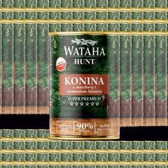 WATAHA Hunt Mono Protein to pełnoporcjowa mokra karma dla psów dorosłych i szczeniąt wszystkich ras. W każdej puszce znajduje się nawet do 95% mięsa mięśniowego. Mięso jest tu bazą receptury, nie marketingowym dodatkiem.