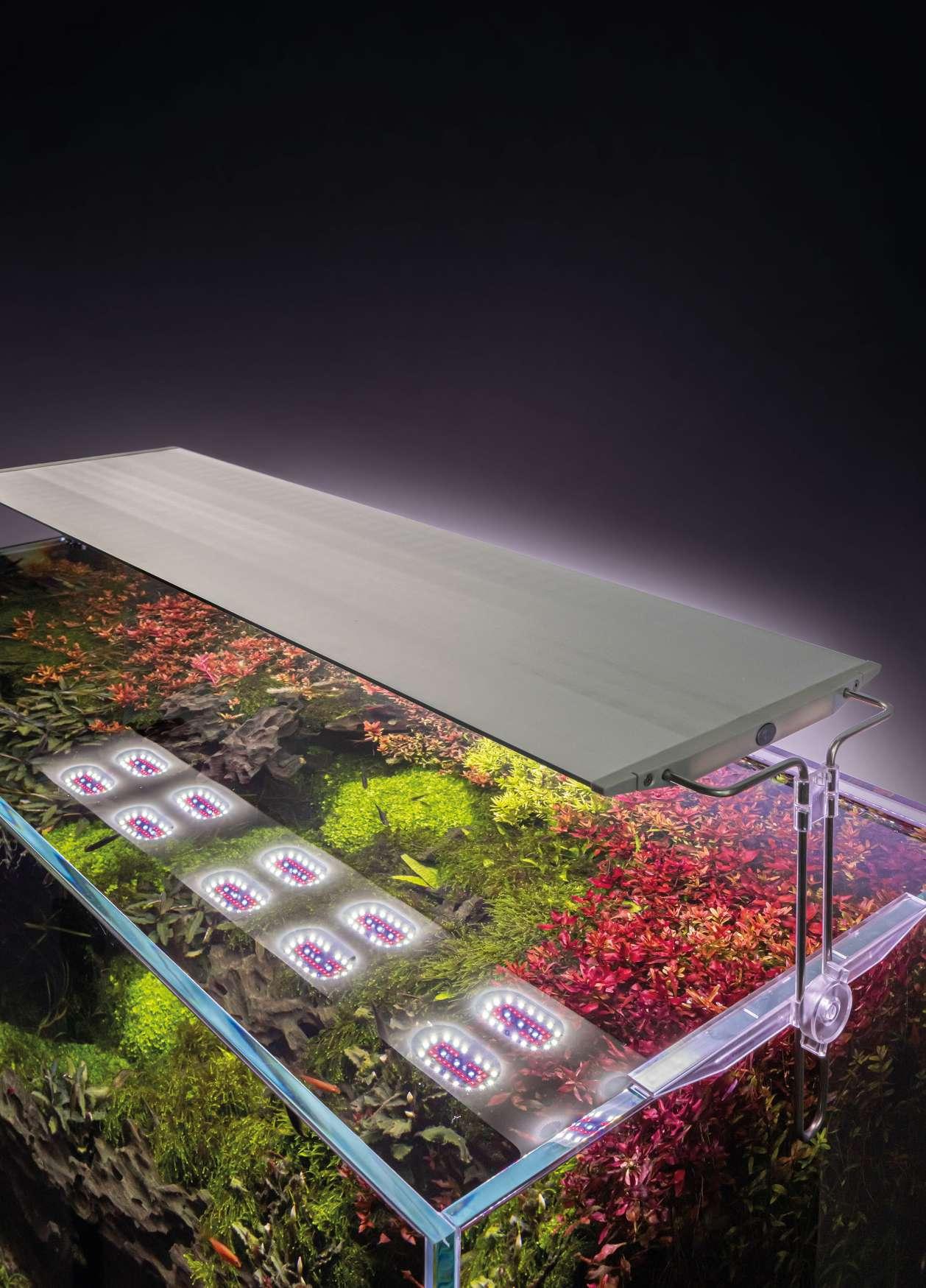 Z łatwością dopasujesz ją do wymiarów swojego akwarium. Możesz wybrać jeden z trzech wariantów rozmiarowych lampy, o długościach: 30, 60 oraz 90 cm albo stworzyć indywidualny moduł oświetleniowy, wieszając lampy obok siebie. Ultra Slim posiada też dwa warianty montażu: możesz zawiesić ją nad akwarium na stalowych linkach lub przymocować na krawędziach zbiornika za pomocą regulowanego stelaża. www.aquael.pl