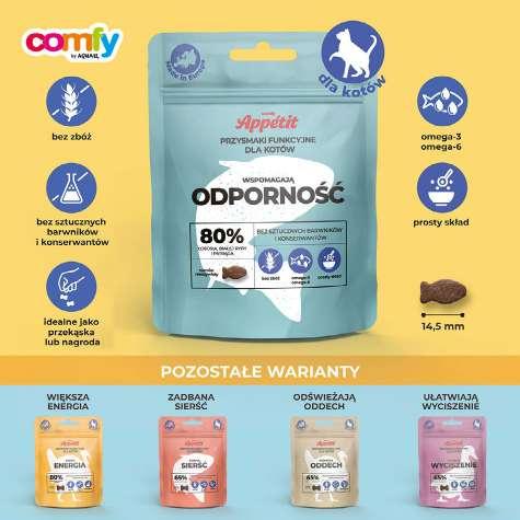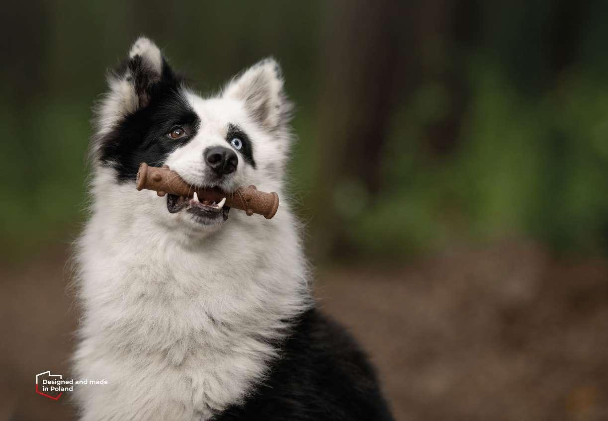 Ten pyszny i delikatny smakołyk dzięki oryginalnemu kształtowi, ułatwiającemu dzielenie na mniejsze fragmenty, sprawdzi się również na treningach.