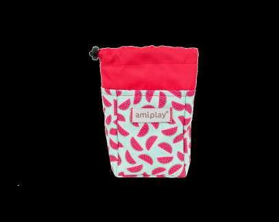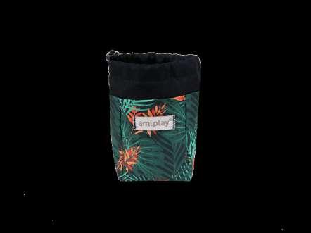 Kolekcja BeHappy powstała, by budzić uśmiech! Słodkie, kolorowe wzory w to warzystwie tropikalnych zieleni przenoszą myślami do ciepłych, egzotycznych krain. Tworząc tę kolekcję, postawiliśmy przede wszystkim na komfort użyt kowania i designerskie wzornictwo. Specjalnie barwiona tkanina poliestrowa cechuje się wysoką odpornością na ścieranie oraz uszkodzenia mechaniczne. Dzięki temu żywe kolory pozostaną intensywne przez długi czas, bez względu na warunki atmosferyczne. Funkcjonalne rozwiązania zastosowane w kolekcji Be Happy podnoszą jakość produktów, a tym samym gwarantują ich niezawodność i jeszcze przyjemniejsze użytkowanie. Torebka na przysmaki z serii to bardzo ważny element każdego spaceru i treningu. Nagradzanie psa w odpowiednim momencie jest niezwykle istotne. Pomaga to wzmocnić trenowaną komendę lub wypracować pożądane zachowanie. Dobrze mieć przysmaki zawsze pod ręką. Torebkę można wygodnie przypiąć do paska, szlufki spodni lub smyczy. W ten sposób nie przeszkadza w poruszaniu się, a jest zawsze blisko. www.amiplay.pl