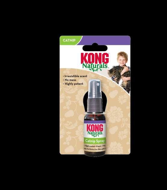 KONG Catnip Spray to wyjątkowy spray z kocimiętką, wygodny w aplikacji i ła twy w użyciu. Każdy kociarz z pewnością zauważył, że czworonożni milusiń scy reagują na kocimiętkę miauczeniem, mruczeniem, ocieraniem się o różne przedmioty i wzmożonym łaszeniem się. Wszystko to za sprawą nepetalaktonu, substancji, która ze znaczną siłą działa na receptory u kotów. Powoduje ona od prężenie i działa trochę jak narkotyk, ale nie uzależnia i jest w pełni bezpieczna dla zwierzęcia. Dlatego też ze względu na swoje właściwości kocimiętka jest tak chętnie wykorzystywana w preparatach, które pomagają w kreowaniu kocich zachowań. Bardzo dobrze sprawdza się w sytuacji, gdy chcemy zachęcić kota do korzystania z drapaka czy wchodzenia do transportera. Kocimiętka to roślina od lat wykorzystywana w medycynie ludowej i ziołolecznictwie, dlatego nie dziwi fakt, że firma KONG wykorzystuje ją tak szeroko. Oprócz wspomnianego sprayu dostępna jest również w formie suszonej, którą można ukryć np. w zabawkach tej marki.