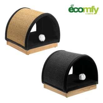 Drapak Half Moon to nowa propozycja Ecomfy dedykowana wszystkim kocim wielbicielom kryjówek i zabaw w tunelu. Elegancki, wysokiej jakości produkt ma formę leżącego półwalca. Wierzch drapaka jest okryty tkaniną sizalową, dzięki czemu kot może ostrzyć pazury na całej jego górnej powierzchni. Pokryte materiałem obiciowym wnętrze zachęca zwierzę do odpoczynku po zabawie. Do podstawy Half Moon zostało przymocowane niewielkie podwyższenie z płyty meblowej, które sprawia, że produkt świetnie spełnia funkcję elementu wyposażenia wnętrza. Podwyższona podstawa ułatwia również przesuwanie drapaka i sprzątanie wokół niego. Solidny i praktyczny produkt został wyprodukowany w Polsce z surowców w 70% pochodzących z recyklingu. Dostępny w dwóch uniwersalnych wariantach kolorystycznych – szaro-czarnym i beżowo-czarnym.