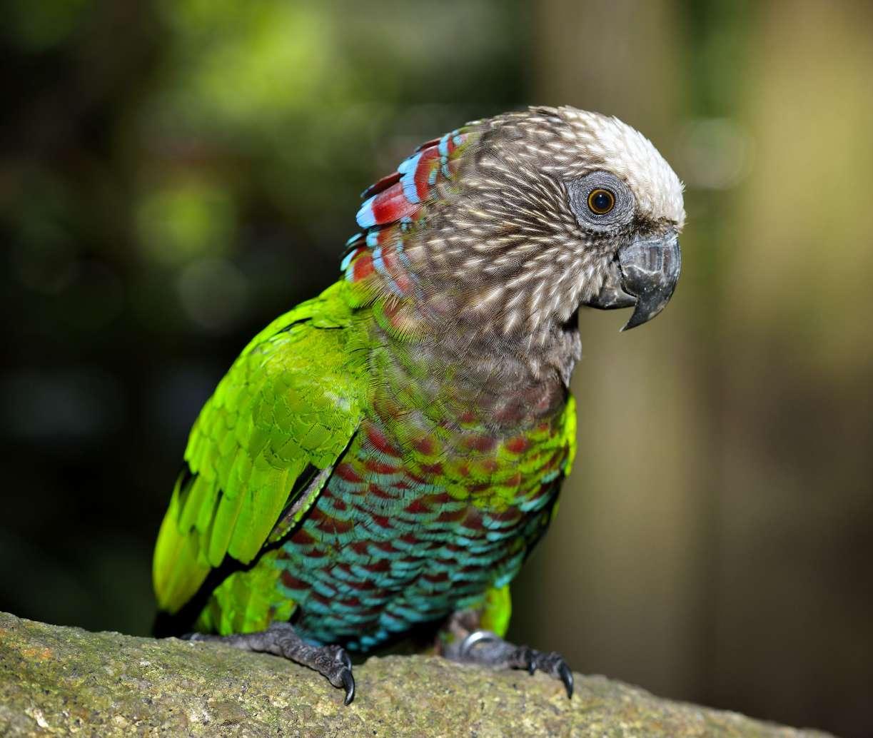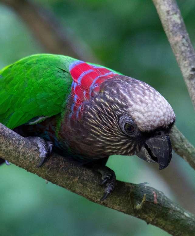 marańcze. Bardzo lubią też niektóre dzikie owoce, np. głóg. Chętnie jedzą warzywa, takie jak tartą marchew, ogórki i pomidory. W wolierze lub klatce nie może zabraknąć również miski z mieszanką ziarna dla średnich papug. Część hodowców zaleca karmienie gotowym peletem dla papug owocożernych. Dodatkowo warto podawać zieleninę i skiełkowane ziarna pszenicy. Od czasu do czasu można nagrodzić papugę np. biszkoptem namoczonym w soku owocowym. Konieczna jest wreszcie regularna suplementacja dobrej jakości preparatem multiwitaminowo-mineralnym dla ptaków egzotycznych.