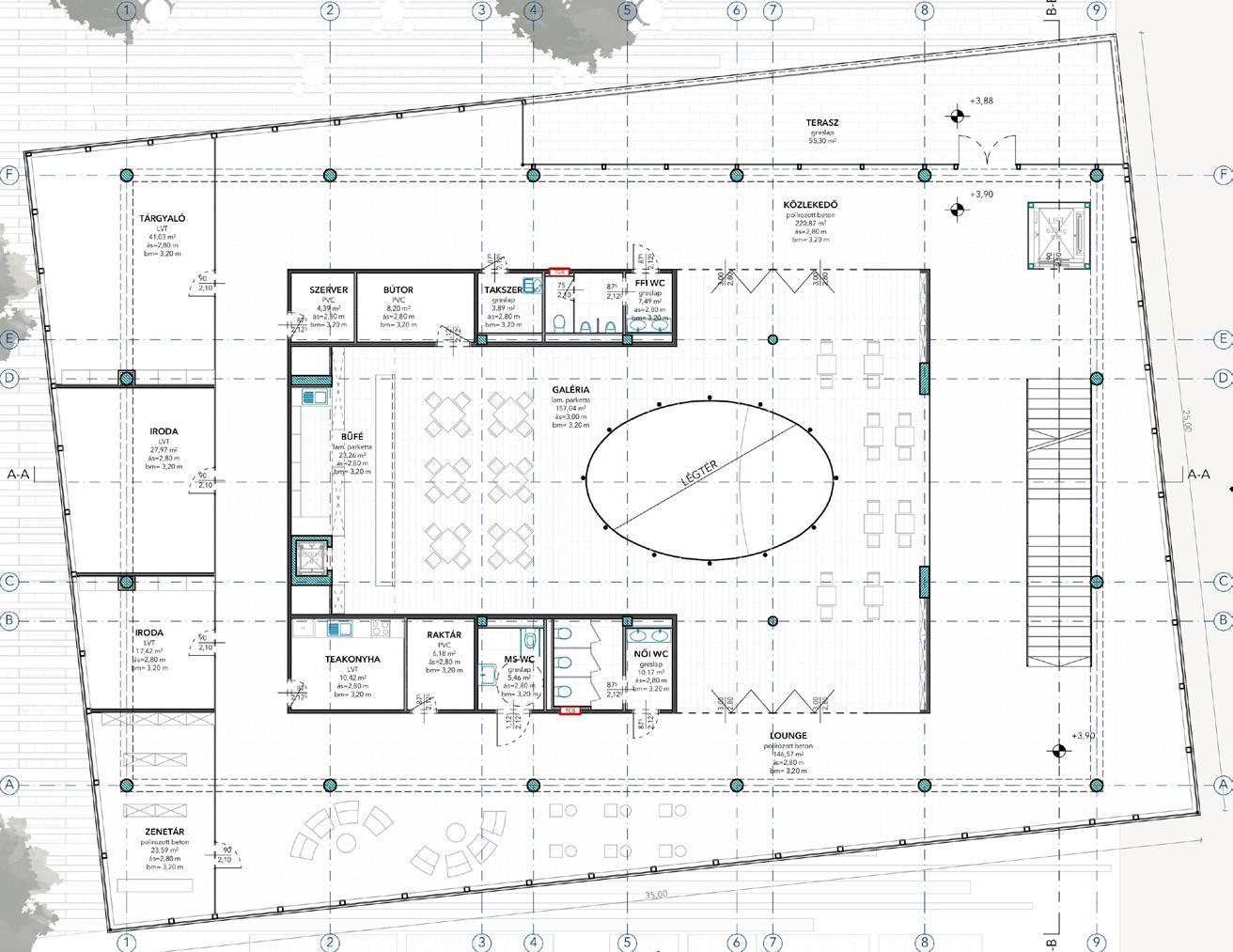 The MusiClub houses a multitude of spatial experiences from the open and bright to the intimate and tranquil. The layout is based on vertical segmentation of the functions from a broader to a narrow target audience. On the ground floor, the bistro serves not only as a canteen, including live music meals and club concerts, but also as a cultural forum.