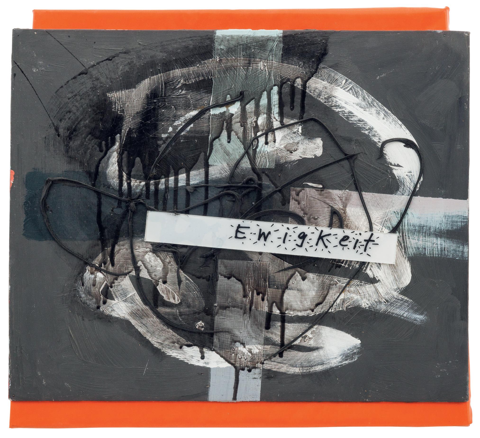 MARTIN KIPPENBERGER (1953-1997) 'Ewigkeit', 1985. Collage (acryl op stevig karton, synthetisch materiaal en synthetische omslag op spieraam).