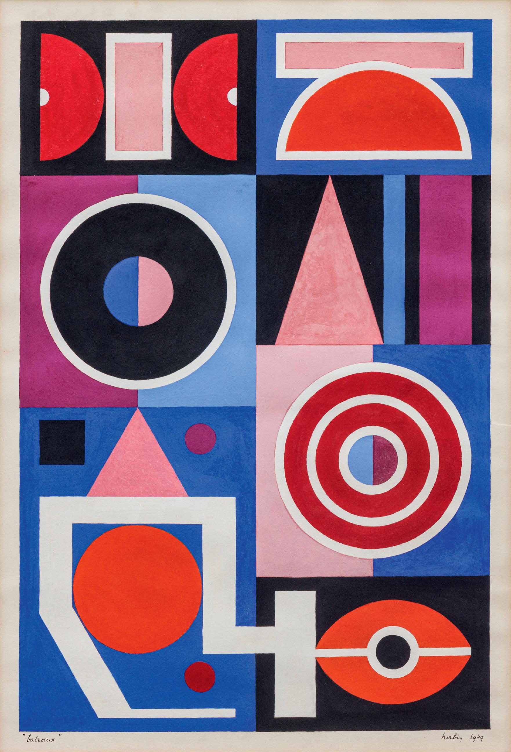 AUGUSTE HERBIN (1882-1960) 'Bateaux', 1949. Gouache op papier. Gesigneerd en gedateerd in inkt. 51 x 34 cm (€ 4500-6000)