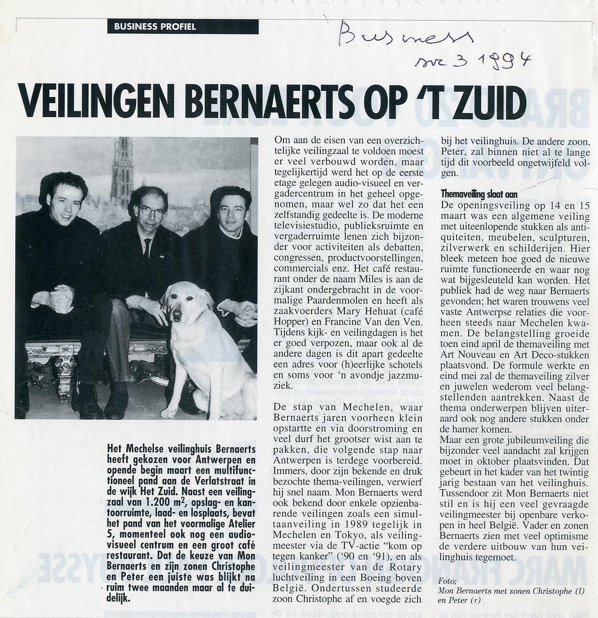 Tien jaar na de oprichting van de roepzaal - intussen ‘Kunstveilingen M. Bernaerts’ - broer Edwin had de zaak verlaten - was de lokroep van de ‘koekenstad’ voor de uit Antwerpen afkomstige veilinghouder zo sterk dat er beslist werd een succursaal te openen, in het voormalige AnHypgebouw.