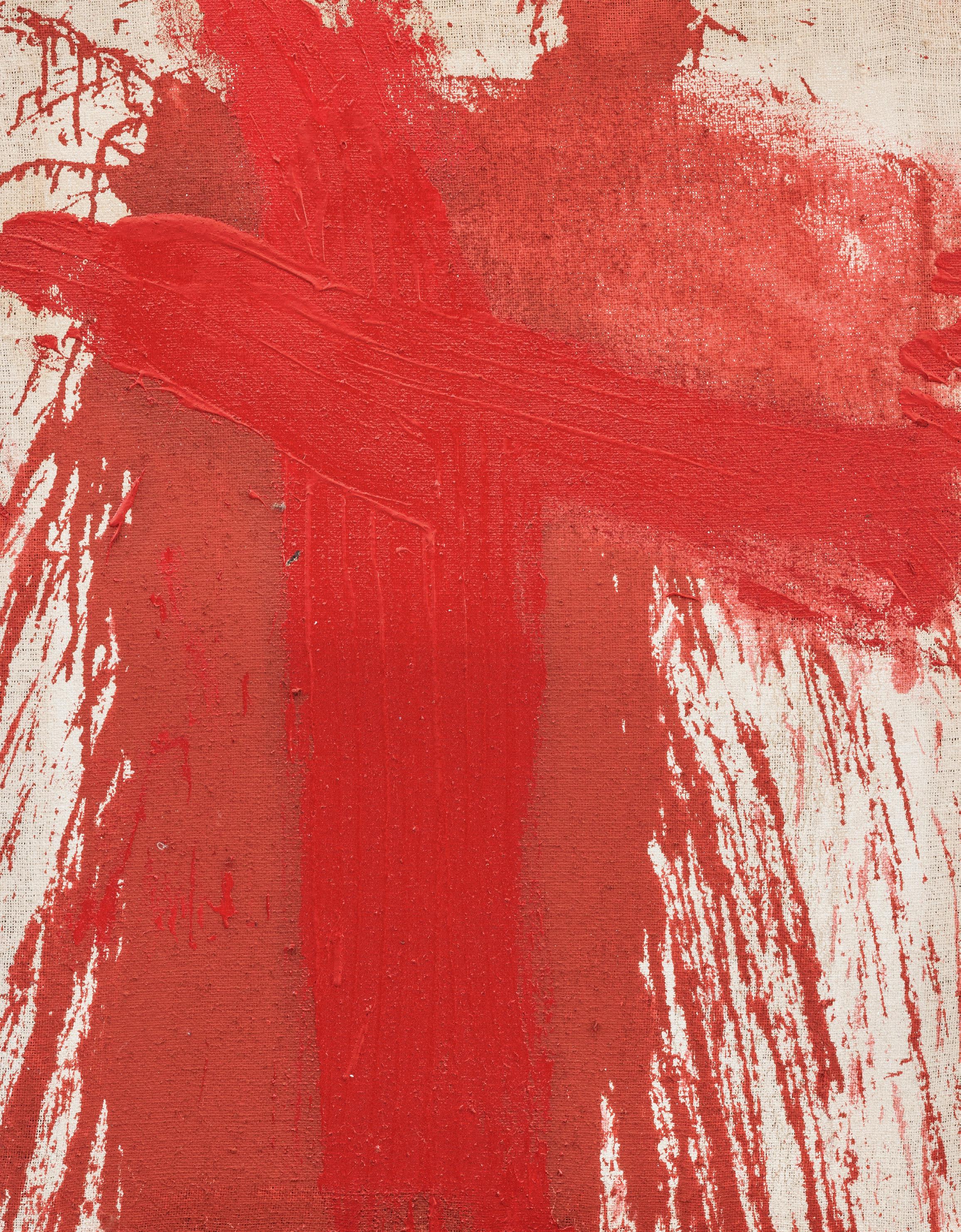 HERMANN NITSCH (°1938) Zonder titel, 1998. Olieverf op doek. Gesigneerd en gedateerd op verso "Hermann/ Nitsch/ 1990". 101 x 81 cm (€ 15000-20000)