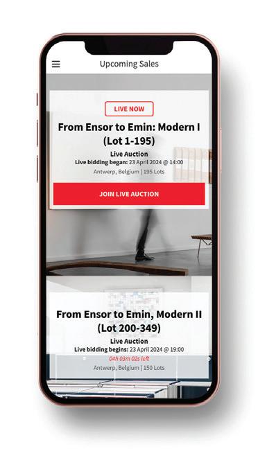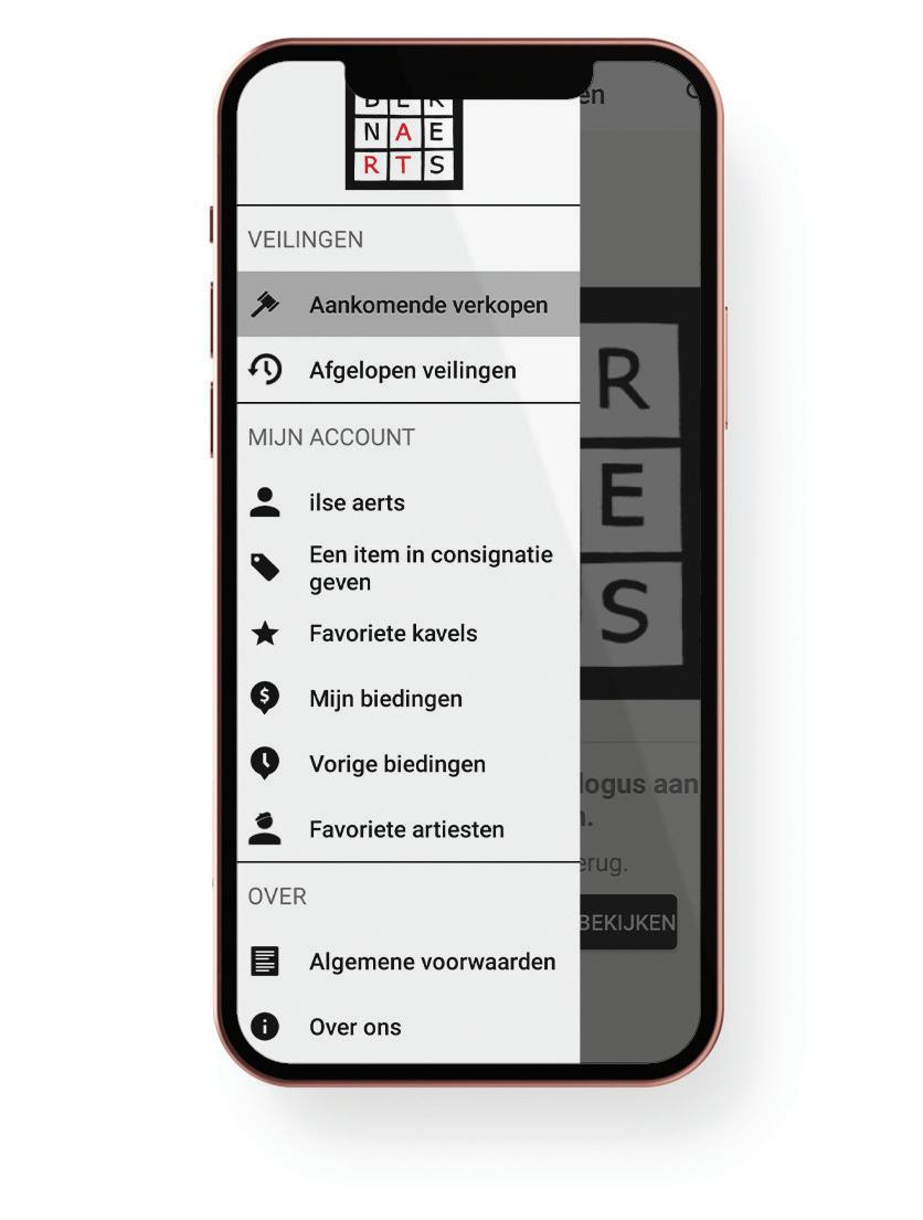 Via onze app ‘Auctioneers Bernaerts’ kan u onze catalogi raadplegen, uw favoriete kavels of artiesten opslaan, registreren voor onze veilingen, de livestream meevolgen, biedingen plaatsen, veilingresultaten raadplegen of zelf uw eigen kunstobjecten aanbieden voor verkoop op één van onze veilingen. De app is gratis.