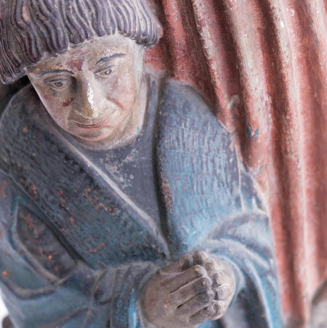 Stenen beelden op originele consoles en met oude polychromie uit Brussel of Doornik te dateren in de tweede helft van de 15de eeuw.